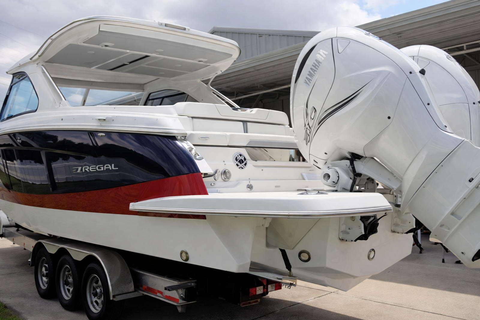 The Regal LX36 is packed with features that elevate your boating lifestyle. As a spacious 37.33-foot bowrider, it offers ample room for friends and family to relax and enjoy the ride. The open bow layout maximizes seating and social space, creating the perfect environment for entertaining or unwinding under the sun. The ergonomic helm station puts you in complete control, while the thoughtfully designed cockpit ensures comfort for all passengers. Every detail, from the premium upholstery to the sleek lines of the hull, reflects Regal’s commitment to quality and luxury.