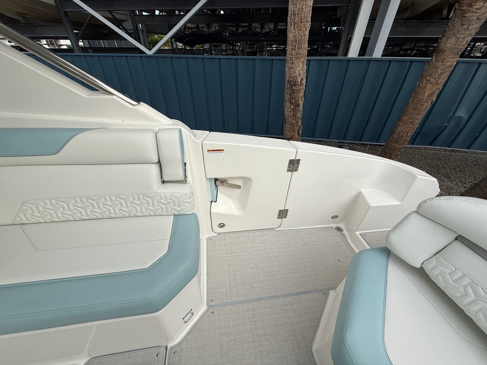 Power and precision are at the heart of the Regal LX36. Equipped with twin engines that deliver a combined 800 horsepower, this bowrider offers exhilarating acceleration and smooth handling. The dual-engine setup ensures optimal performance, whether you are cruising at high speeds or navigating tight turns. The advanced engineering behind the LX36 provides a responsive and agile ride, making it easy to handle for both seasoned captains and those new to boating. With this level of horsepower, you can confidently explore new waters, tow water sports enthusiasts, or simply enjoy the thrill of open-water cruising.