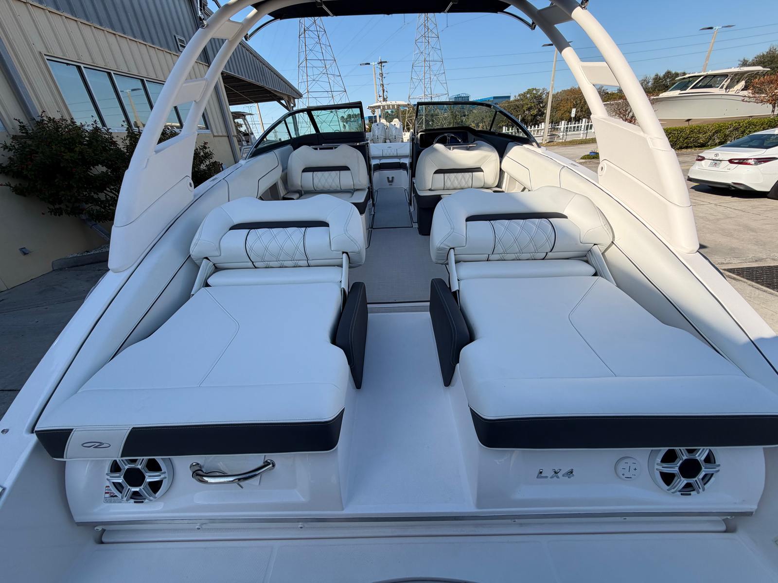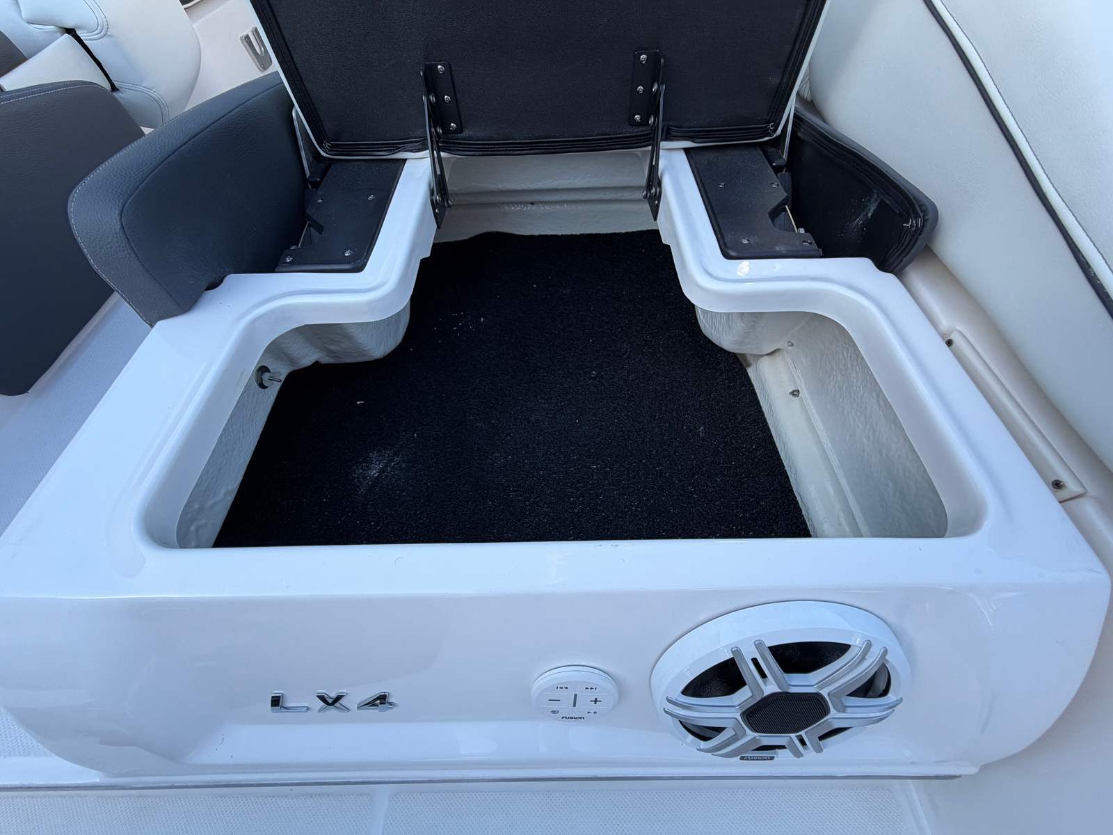 The Regal LX4 is designed for versatility and ease of ownership. Its manageable length makes storage straightforward, whether you’re keeping it at a marina or trailering it to your favorite launch site. The bow thruster and fender clips streamline docking, so you can spend less time maneuvering and more time enjoying the water. The dual battery switch ensures reliable power for electronics and accessories, while the cockpit seagrass mat provides a comfortable, easy-to-clean surface for all your activities.Fuel efficiency and responsive handling make the LX4 a practical choice for both short trips and longer adventures. The head compartment adds convenience for families and groups, while the port light brings a bright, welcoming feel to the interior. Every feature is designed to make boating easier, more enjoyable, and more accessible for everyone on board.