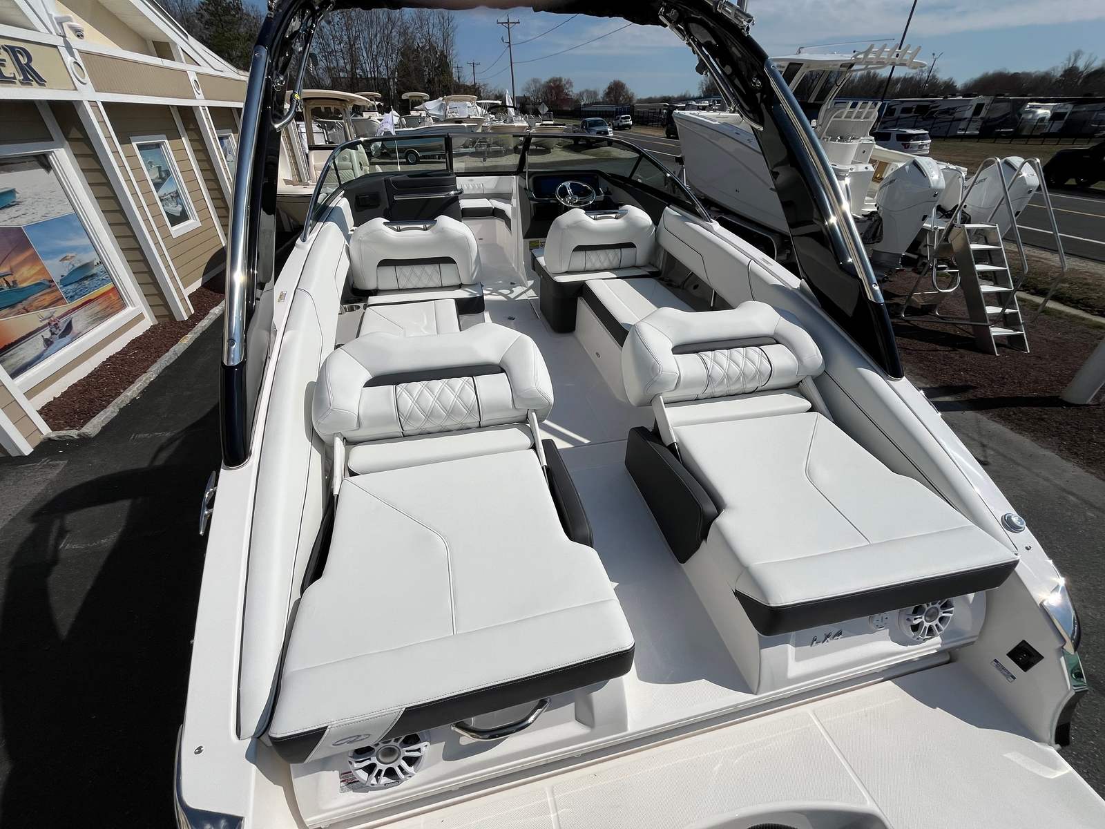 The 2025 Regal LX4 is a standout bowrider boat for sale that combines cutting-edge design, powerful performance, and a host of premium features. With its striking Tahiti Beach White and Black exterior, dual battery system, bow thruster, and luxurious transom shower and pressure water package, this Regal boat for sale offers everything you need for unforgettable days on the water.If you are ready to elevate your boating lifestyle and create lasting memories with family and friends, the Regal LX4 is the perfect choice. Don’t miss your chance to own this exceptional bowrider – contact your local dealer today to learn more and schedule a viewing. Your next adventure awaits!