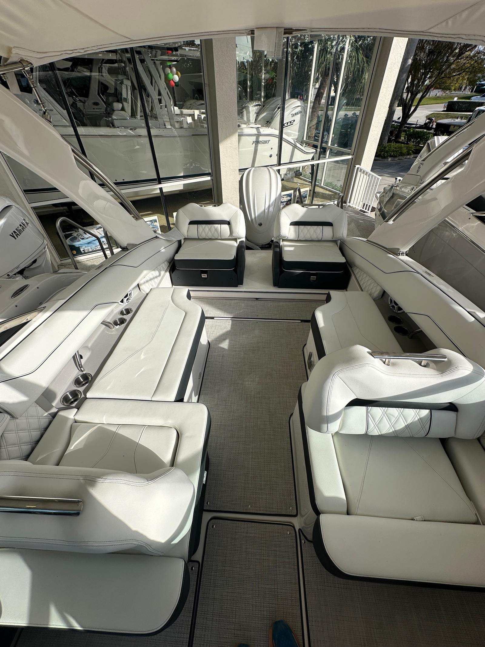 At the heart of the Regal LX4 is the powerful Yamaha F300XCB engine, delivering a robust 300 horsepower for exhilarating acceleration and smooth cruising. This single-engine setup is engineered for reliability and efficiency, making it ideal for both leisurely rides and high-speed adventures. Whether you’re towing water toys, slicing through waves, or simply enjoying a sunset cruise, the LX4’s performance capabilities ensure a responsive and enjoyable experience every time you hit the water.