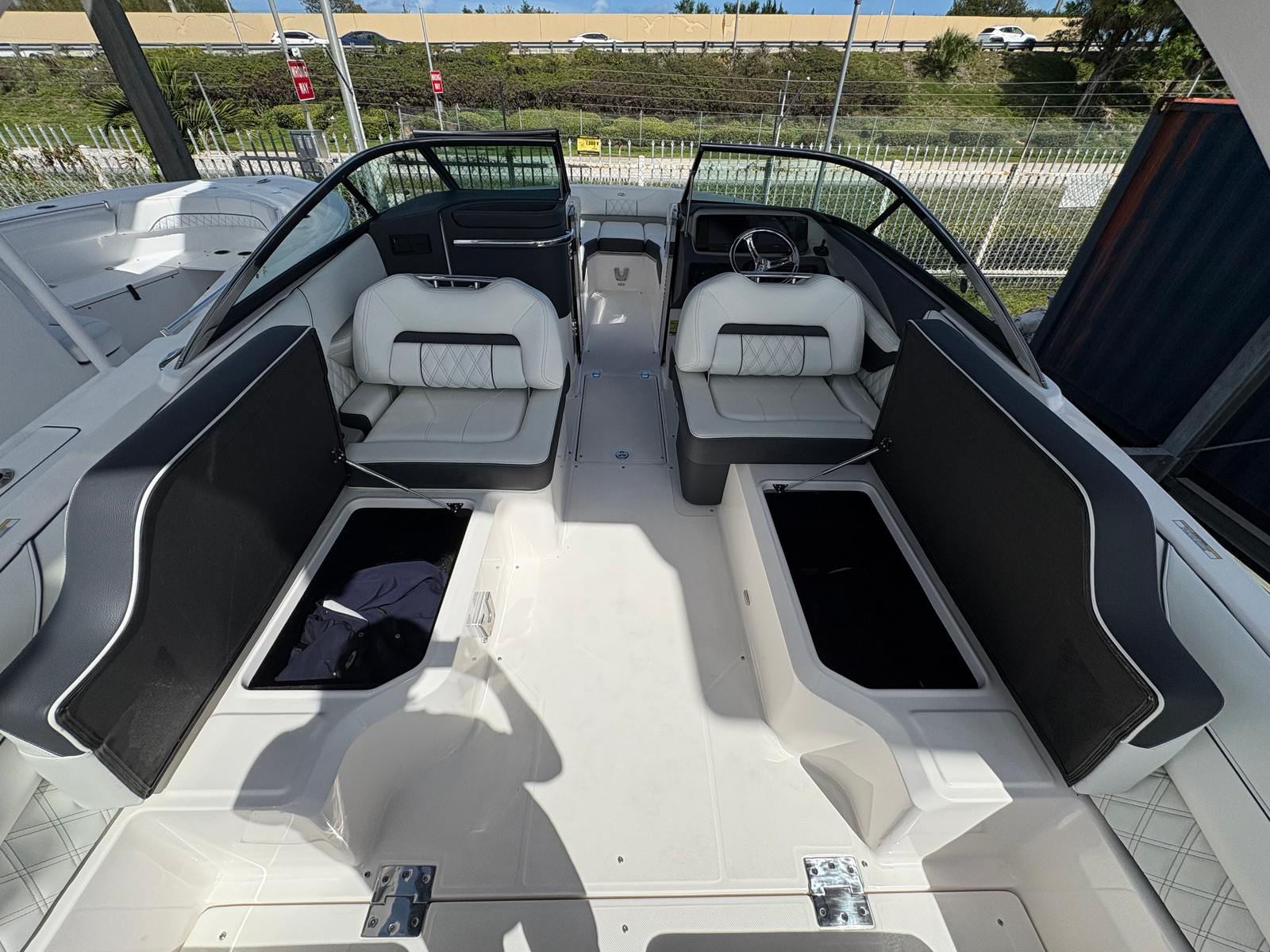 The Regal LX4 Bowrider is packed with special features that enhance both convenience and enjoyment. The Bow Sunshade System – Manual offers flexible protection from the sun, allowing you to relax in comfort during those hot summer days. Bow & Cockpit Covers keep your boat protected when not in use, preserving its pristine condition and making maintenance a breeze. The Mediterranean Blue canvas adds a touch of elegance, while the Cockpit Seagrass Mat provides a soft, stylish surface underfoot.For added peace of mind, the Dual Battery Switch with Tray and Cables ensures reliable power management, and the Battery Charger keeps your systems ready for action. Maneuvering in tight spaces is effortless thanks to the Bow Thruster, making docking and navigating marinas stress-free. The Transom Shower & Pressure Water Package offers convenient rinsing after swimming or watersports, and the trim tabs allow for precise control over your boat’s attitude and stability.