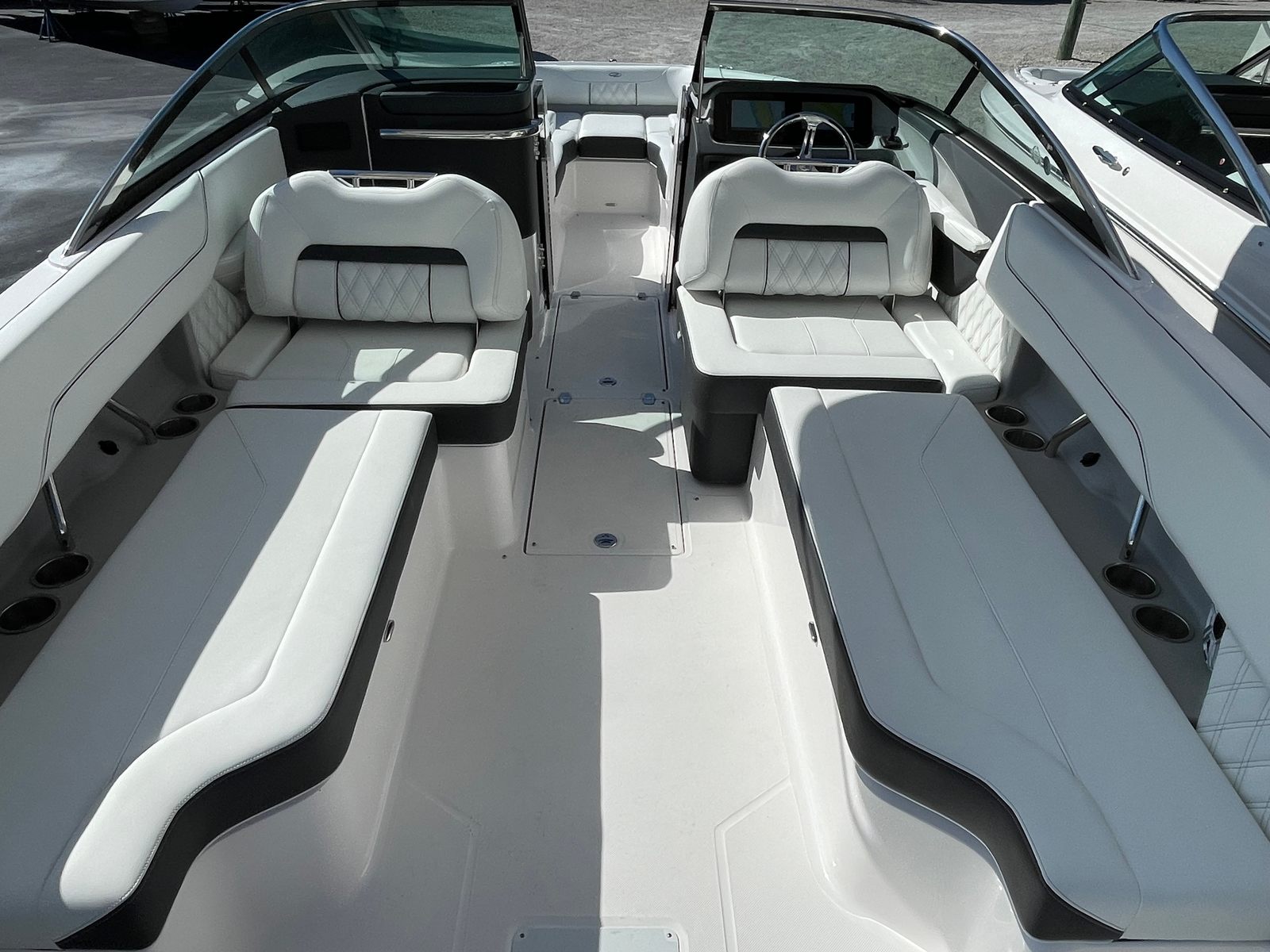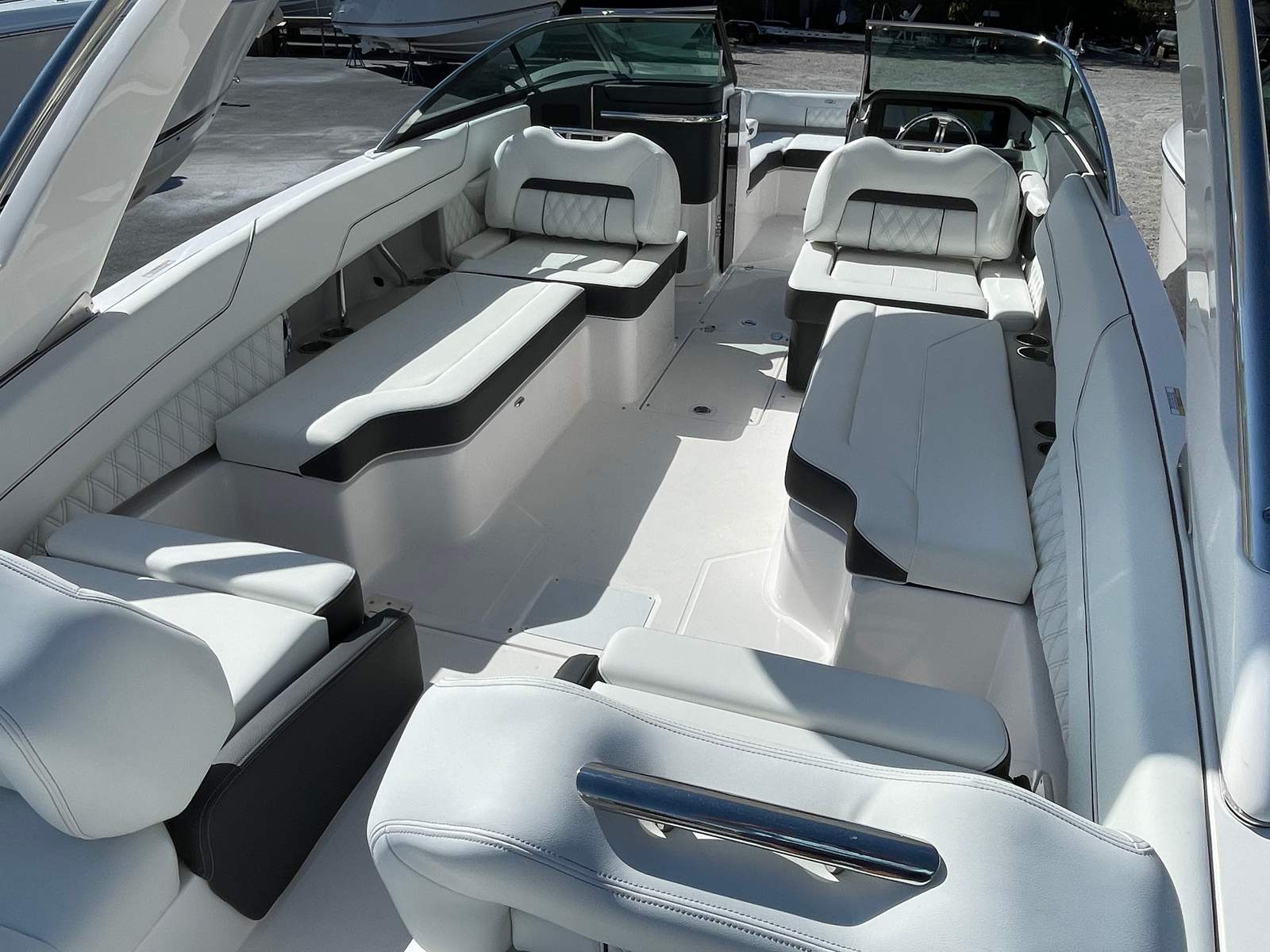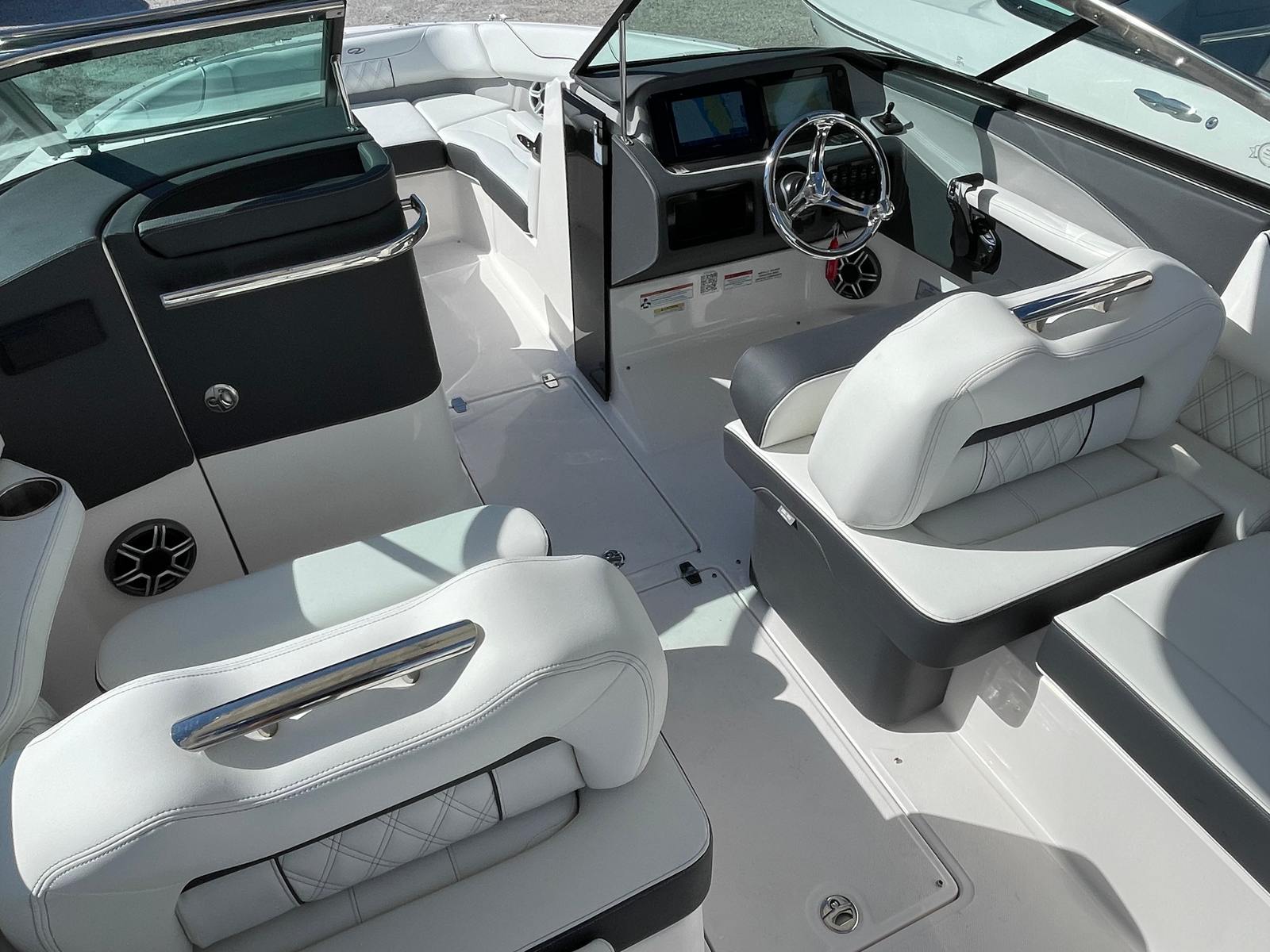 The Regal LX6 is designed with practical boating in mind. Its 26.25-foot length offers ample storage for gear, water toys, and personal items, keeping the deck clutter-free and organized. The dual battery switch system ensures you always have reliable power, making it easy to manage onboard electronics and accessories.Docking and maneuvering are a breeze thanks to the responsive handling provided by the Yamaha V6 engine. The boat’s size strikes a perfect balance between spaciousness and ease of docking, making it suitable for both seasoned boaters and those new to the water. The cockpit seagrass mat not only adds comfort but also makes cleaning up after a day of fun quick and simple.Fuel efficiency is another advantage of the LX6’s modern engine technology, allowing you to spend more time on the water and less time at the fuel dock. The protective covers help maintain the boat’s pristine condition, reducing maintenance and ensuring your investment stays looking its best for years to come.
