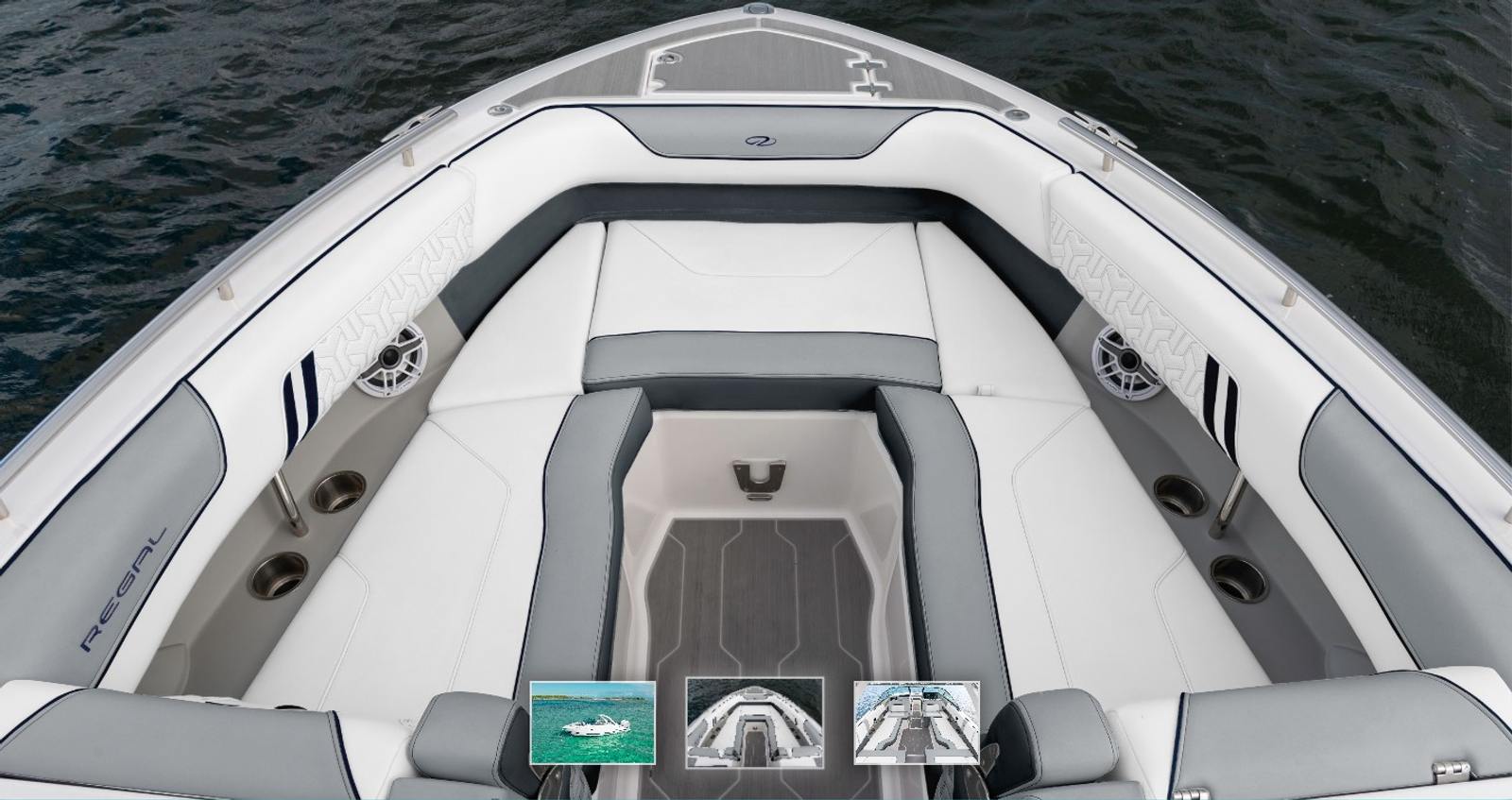 The 2026 Regal LX9 is designed with both style and comfort in mind. Its special features set it apart from other Bowrider boats for sale, creating a unique and inviting atmosphere on board. The hull color in Tahiti Beach White, paired with a Mediterranean Blue bootstripe and bottom, gives the LX9 a fresh, vibrant look that stands out on any waterway. The interior zones are thoughtfully appointed: Zone 1 features Pure White as standard, Zone 2 is finished in Graphite, Zone 3 in Lunar Grey, Zone 4 in Graphite - Chil, Zone 5 in Mediterranean Blue - Chil, and Zone 6 in Mediterranean Blue. These color combinations create a sophisticated and modern ambiance, making every outing feel special.The twin Yamaha 250 engines not only provide impressive power but also ensure reliability and ease of maintenance. The 29-foot length offers ample space for seating, lounging, and storage, making it easy to bring along all your gear for a day of fun. Every detail of the LX9 is crafted to enhance your time on the water, from the comfortable seating arrangements to the intuitive layout that maximizes both usability and aesthetics.