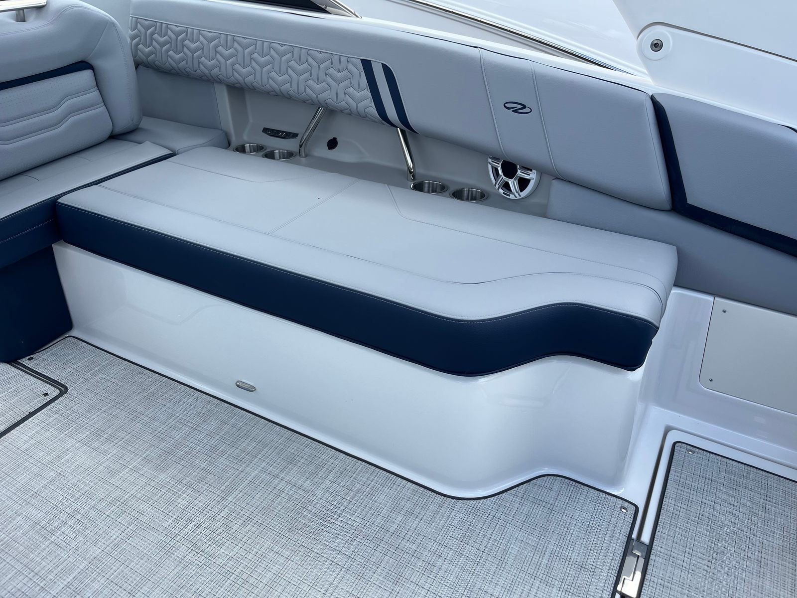 Owning the Regal LX9 Ultimate means embracing a lifestyle of fun, relaxation, and adventure. The spacious 29-foot layout offers plenty of room for socializing, sunbathing, or enjoying a meal with friends and family. The plush seating and thoughtfully arranged zones create a welcoming environment where everyone can find their perfect spot, whether they prefer basking in the sun or relaxing in the shade.This bowrider is designed for those who love to entertain, with ample space for guests and easy access to the water for swimming, snorkeling, or paddleboarding. The powerful twin engines ensure you can reach your favorite destinations quickly and efficiently, while the stylish design guarantees you’ll make a lasting impression wherever you go.