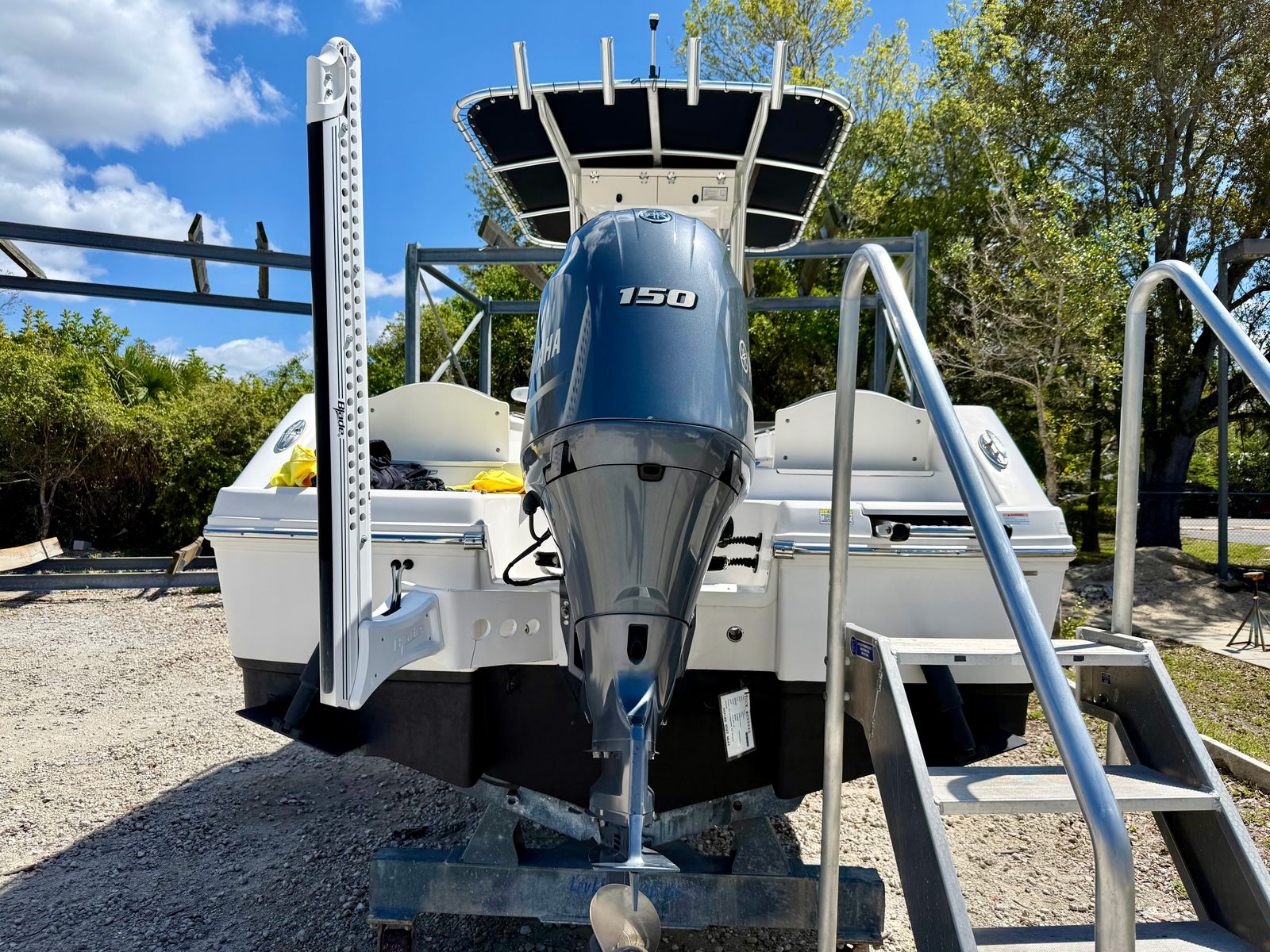 Powered by a single 150-horsepower engine with just 150 hours of use, the Robalo R200 delivers a smooth and responsive ride. The engine’s reliable performance ensures you have the power needed to get to your favorite fishing spots quickly or enjoy a day of water sports with ease. The center console design enhances visibility and maneuverability, making docking and navigating tight waterways a breeze. Whether you’re cruising at a leisurely pace or pushing the throttle for a bit more excitement, this Robalo boat for sale offers a balanced blend of speed, efficiency, and control.