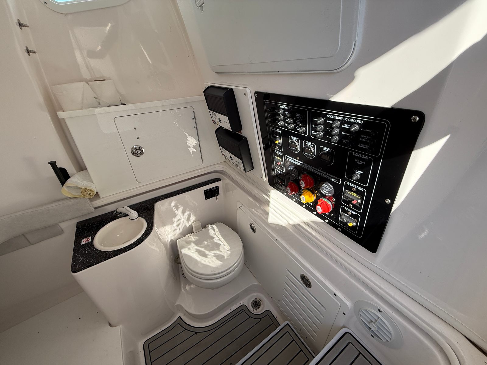 Practicality is at the heart of the Sea Fox 328 Commander’s design. The ample deck space makes it easy to store gear, coolers, and other essentials, while the thoughtful layout ensures that everything you need is always within reach. Docking is a breeze thanks to the responsive handling and manageable size, making it simple to navigate marinas or pull up to your favorite waterfront restaurant. The efficient twin-engine setup not only delivers impressive speed but also helps optimize fuel consumption, allowing you to spend more time enjoying the water and less time refueling. Whether you are planning a weekend getaway or a quick afternoon escape, this Sea Fox boat for sale is ready to accommodate your every need.