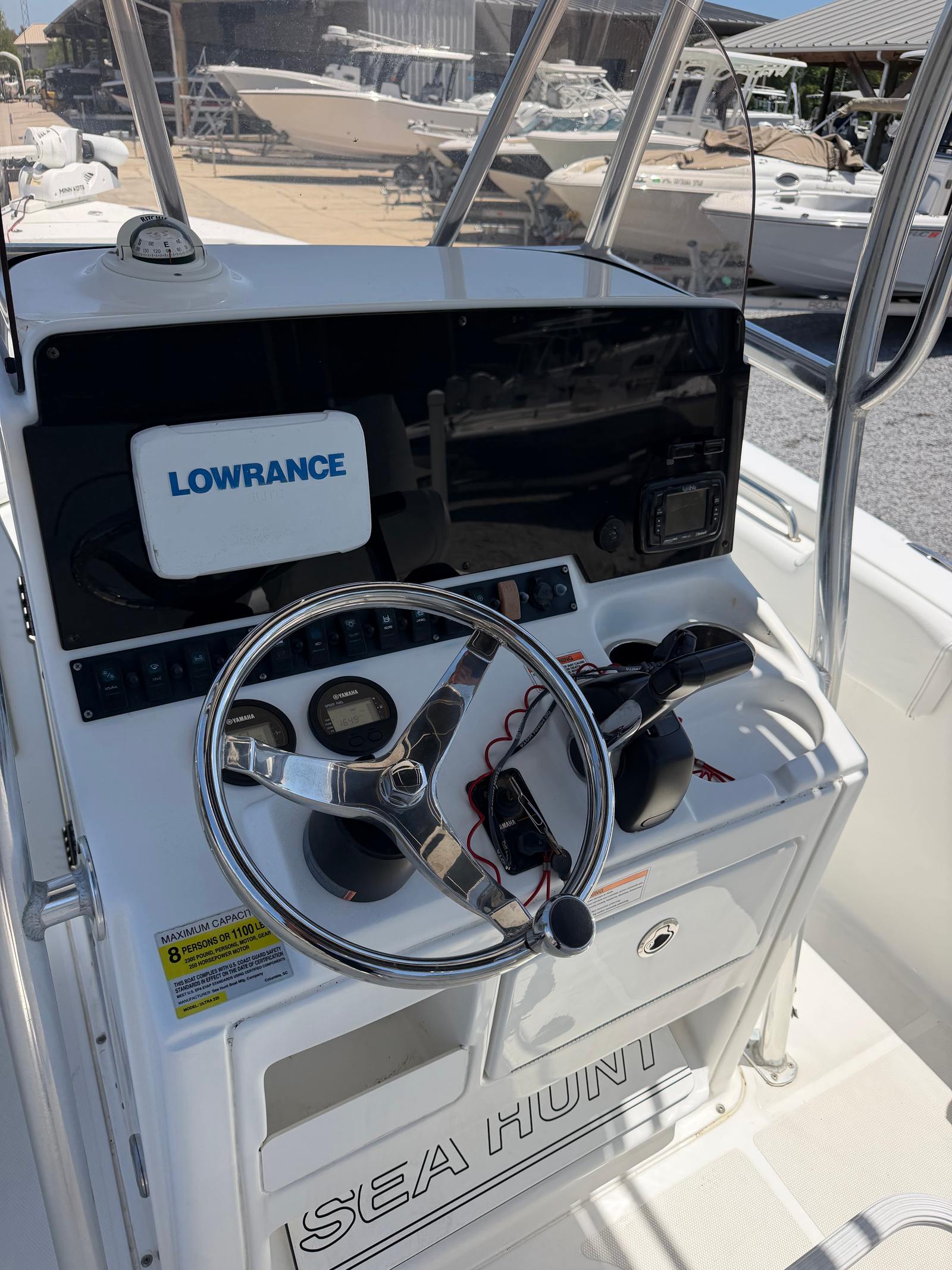 Powered by a single 200-horsepower engine with only 194 hours, the Sea Hunt 225 Ultra offers impressive performance and efficiency. The engine’s power allows for smooth acceleration, responsive handling, and the ability to navigate both calm bays and choppier offshore waters with confidence. Whether you’re heading out for a day of fishing or cruising with friends, the 225 Ultra’s engine delivers the reliability and strength you need for a variety of on-water activities. With its manageable size and responsive controls, docking and maneuver ing are a breeze, making this center console boat for sale an excellent choice for both seasoned boaters and newcomers alike.
