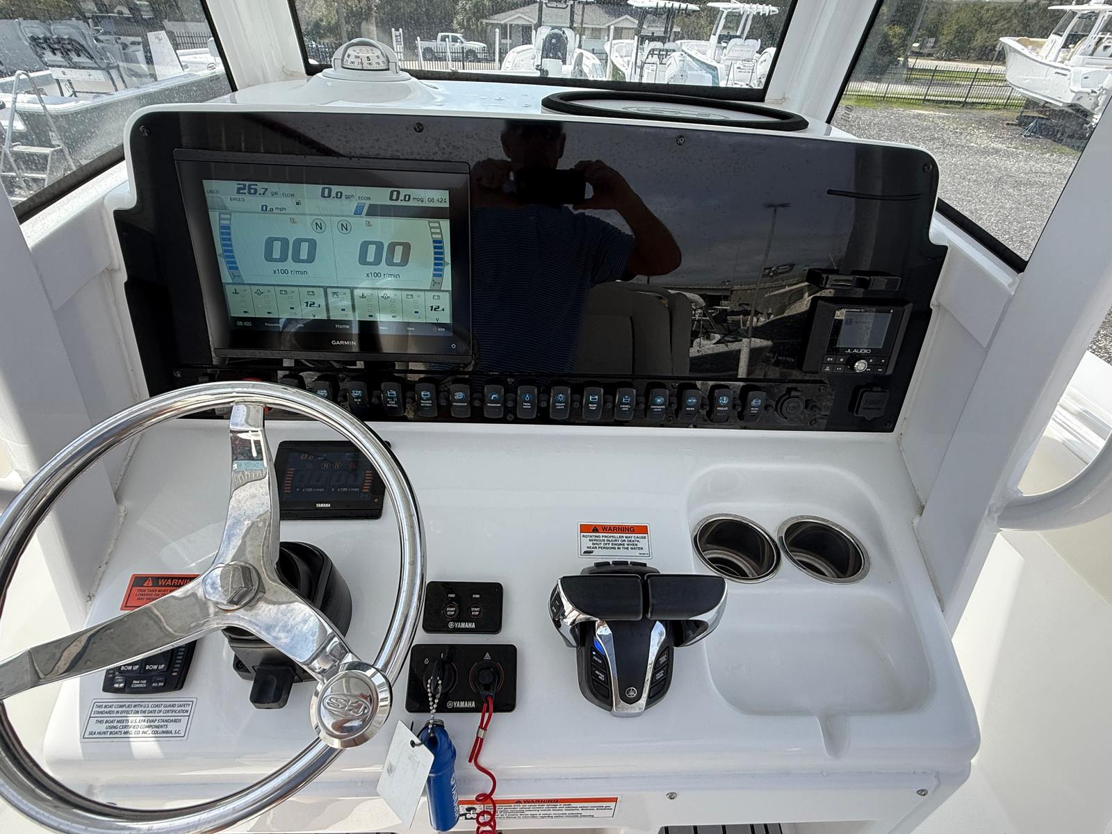The Sea Hunt 27 Gamefish FS is designed with practicality in mind. The center console layout offers excellent visibility for the captain, making navigation straightforward and safe. The generous storage compartments are perfect for stowing fishing gear, water toys, safety equipment, and personal items, ensuring everything you need is within easy reach.Docking and maneuvering are simplified by the responsive twin-engine setup, allowing you to handle tight spaces with confidence. The boat’s efficient design also means you can enjoy longer outings without frequent refueling stops, maximizing your time on the water. Whether you are heading out for a quick afternoon cruise or planning a full day of fishing, this Sea Hunt boat for sale adapts to your needs with ease.