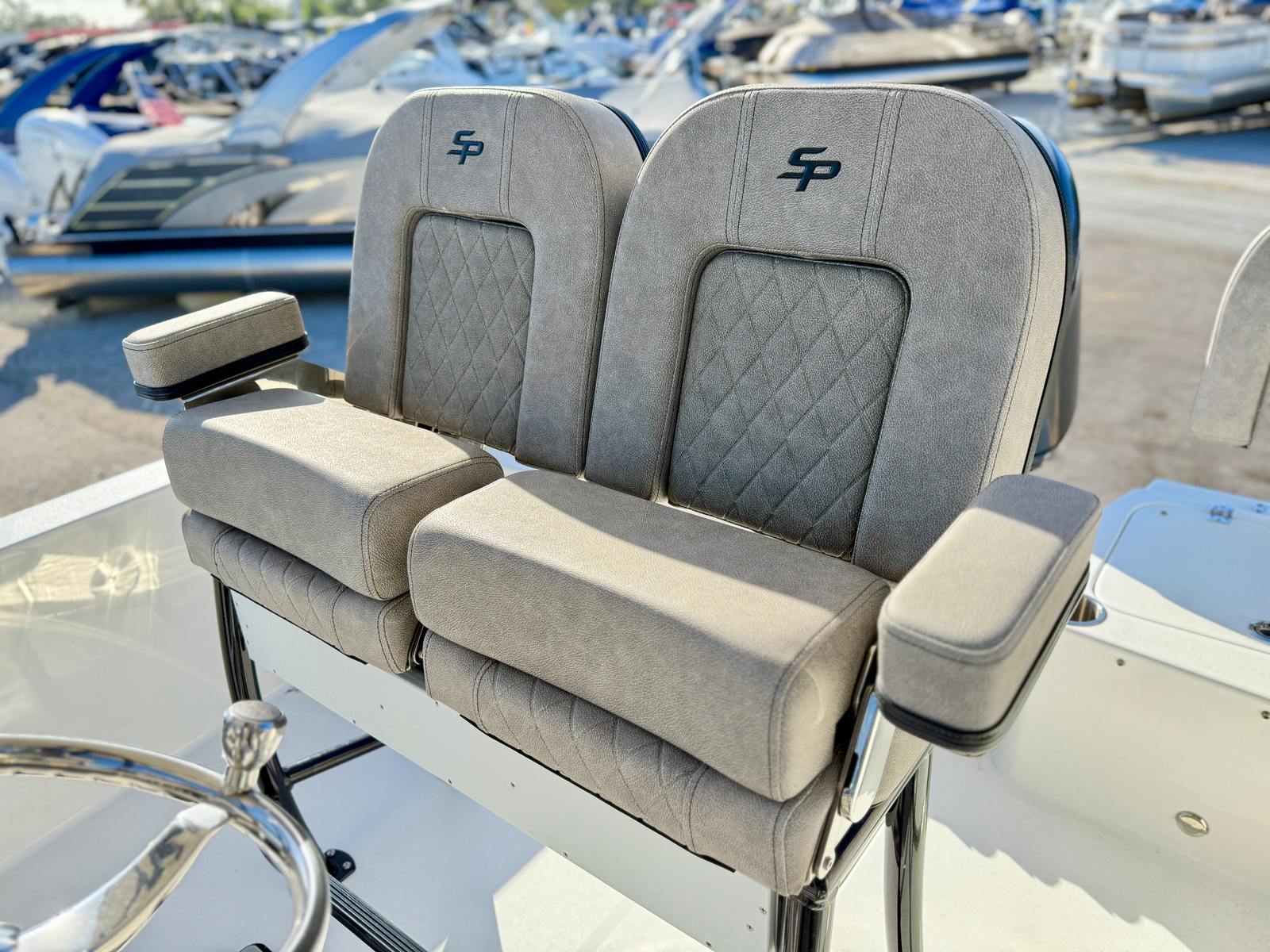 The 2024 Sea Pro 202 CC is loaded with features that enhance both its functionality and its visual appeal. The Platinum color scheme extends from the hull sides to the console and upholstery, creating a cohesive and upscale aesthetic. The Powder Coat - Black finish adds a touch of elegance and durability to the boat’s hardware, while the Standard White hull bottom and underside maintain a classic, clean look.One of the standout features is the fiberglass hard top, which offers superior protection from the sun and elements, allowing you to enjoy longer days on the water in comfort. The hard top’s Standard White color complements the overall design, while providing a sturdy platform for mounting electronics or additional accessories. Every detail, from the rigging to the upholstery, has been carefully selected to ensure maximum comfort, durability, and style.