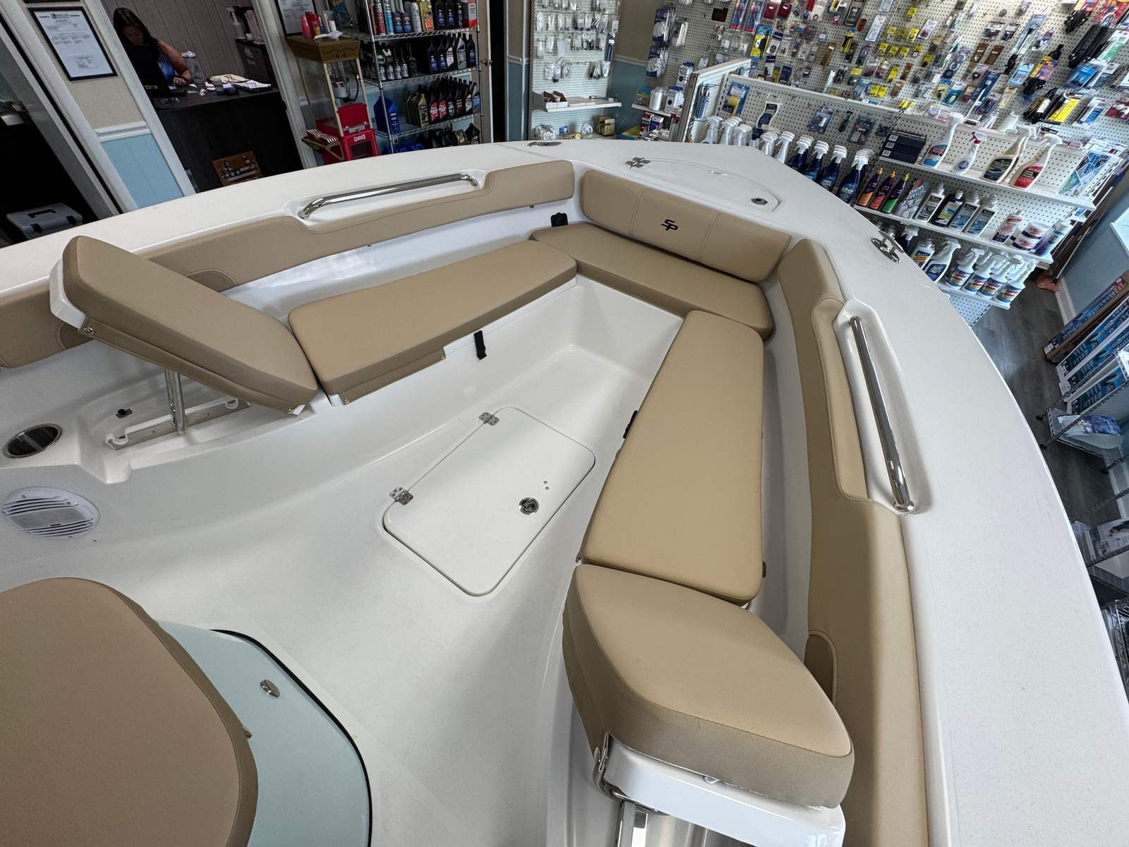 This Sea Pro boat for sale comes equipped with a host of special features designed to maximize comfort, convenience, and enjoyment on the water. The T-Top with white canvas provides essential shade and protection from the elements, ensuring you and your guests stay cool during sunny days. The powder-coated white finish on the T-Top and other hardware not only enhances durability but also adds a touch of elegance to the boat’s appearance.The standard leaning post offers ergonomic support for the captain, making long days on the water more comfortable. The complete bolster package adds extra cushioning around the cockpit, enhancing both safety and relaxation for everyone on board. Protective covers for the console and leaning post help keep your boat looking pristine, safeguarding key areas from sun, salt, and weather exposure.