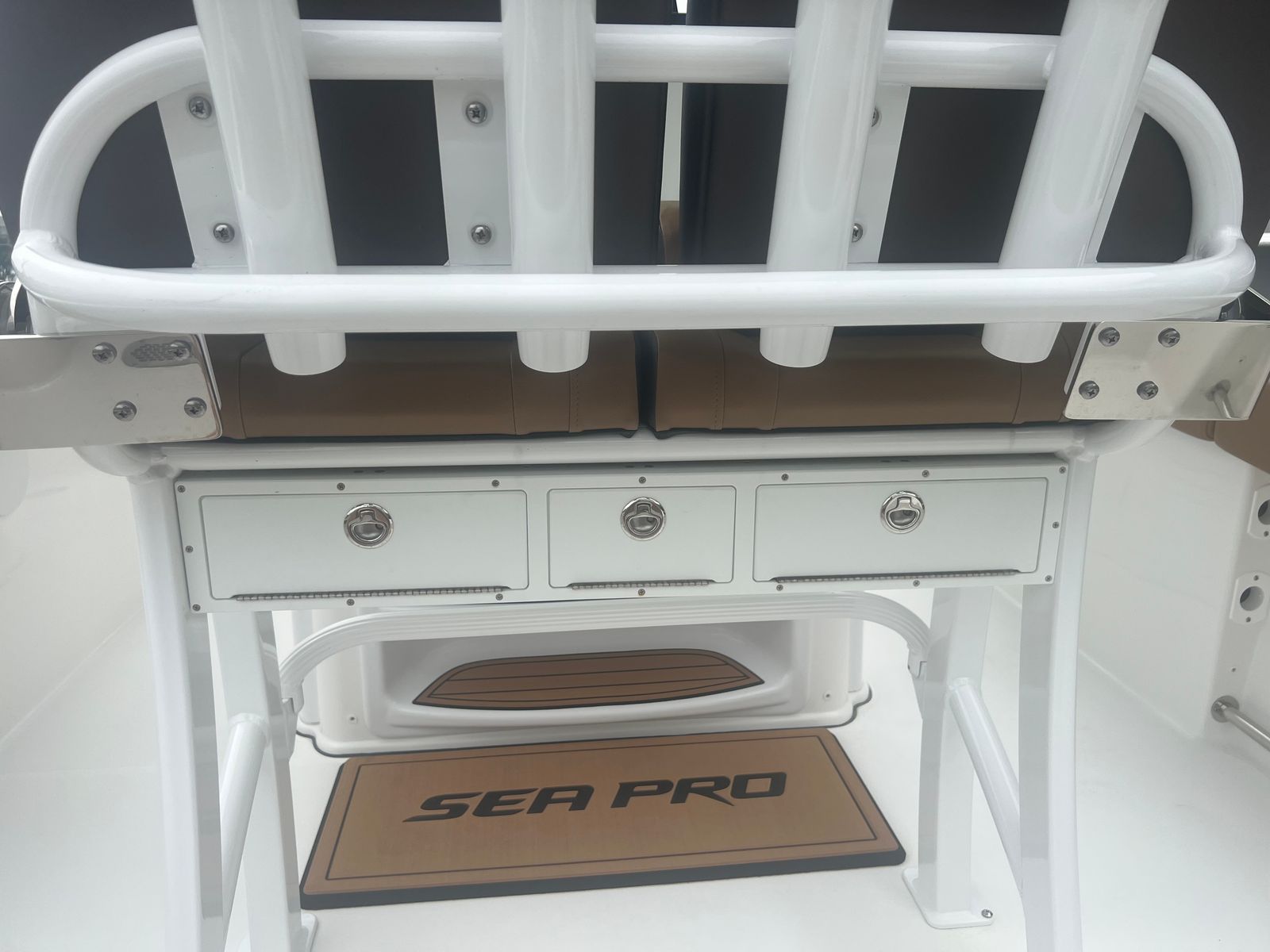 The Sea Pro 242 Sport is loaded with features that enhance both functionality and comfort. The hard top with windshield enclosure offers excellent protection from the elements, allowing you to enjoy your time on the water regardless of the weather. The white powder-coated accents add a touch of elegance and durability, while the stainless steel cup holders (seven in total) ensure that refreshments are always within reach for you and your guests.The hull’s Seafoam color not only looks fantastic but also contributes to the boat’s modern appeal. The Cafe Brown upholstery provides a warm, inviting seating area that is both stylish and comfortable. For added convenience, the fresh water wash down system makes it easy to keep your boat clean after a day of fun.Navigation and connectivity are top-notch, thanks to the Simrad NSX12 unit, which offers advanced chart plotting and fish-finding capabilities. The Sea Pro Connect App brings smart technology to your fingertips, allowing you to monitor and manage key boat functions directly from your mobile device. The hard top is further enhanced by a powerful light bar, ensuring excellent visibility during early morning departures or evening returns.