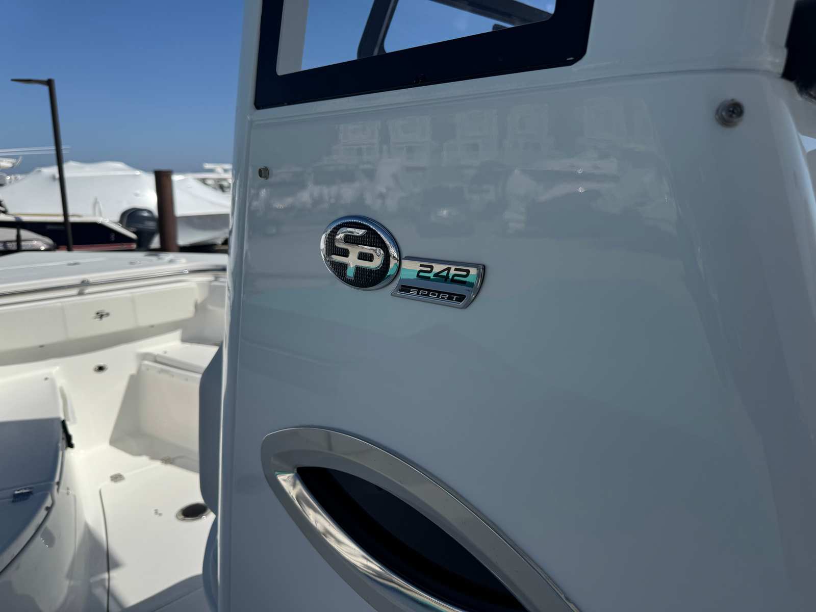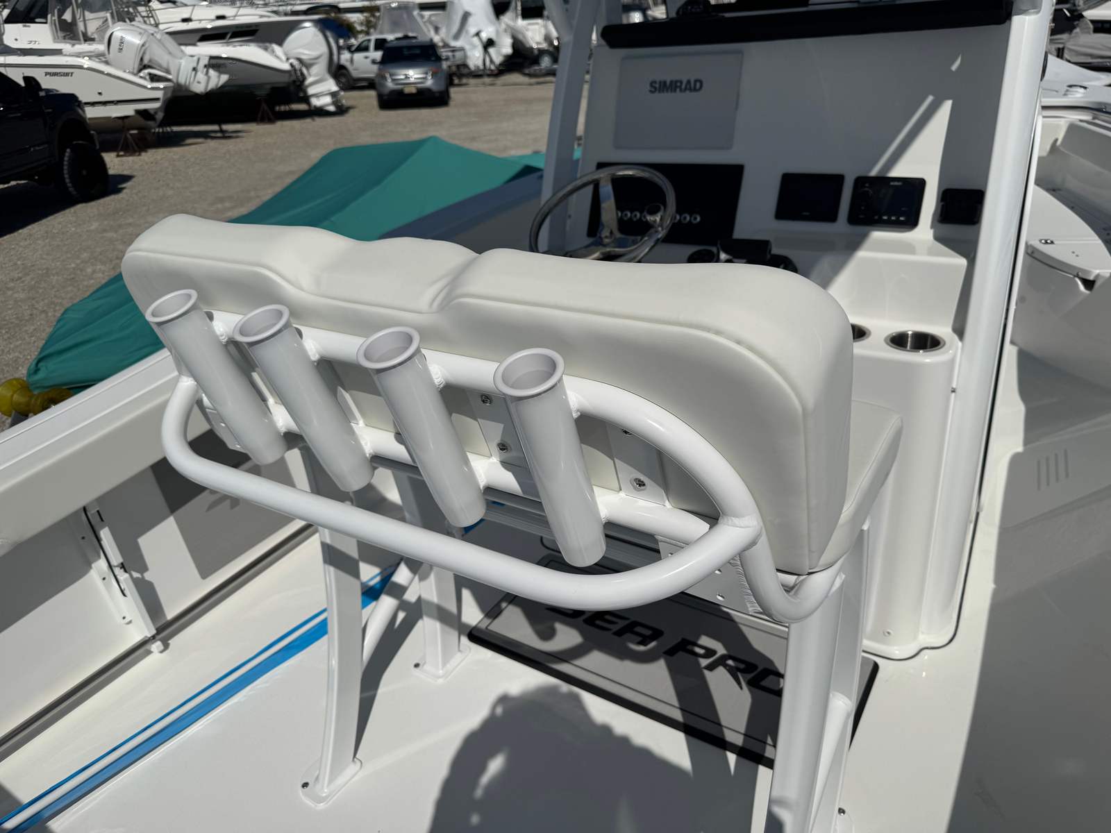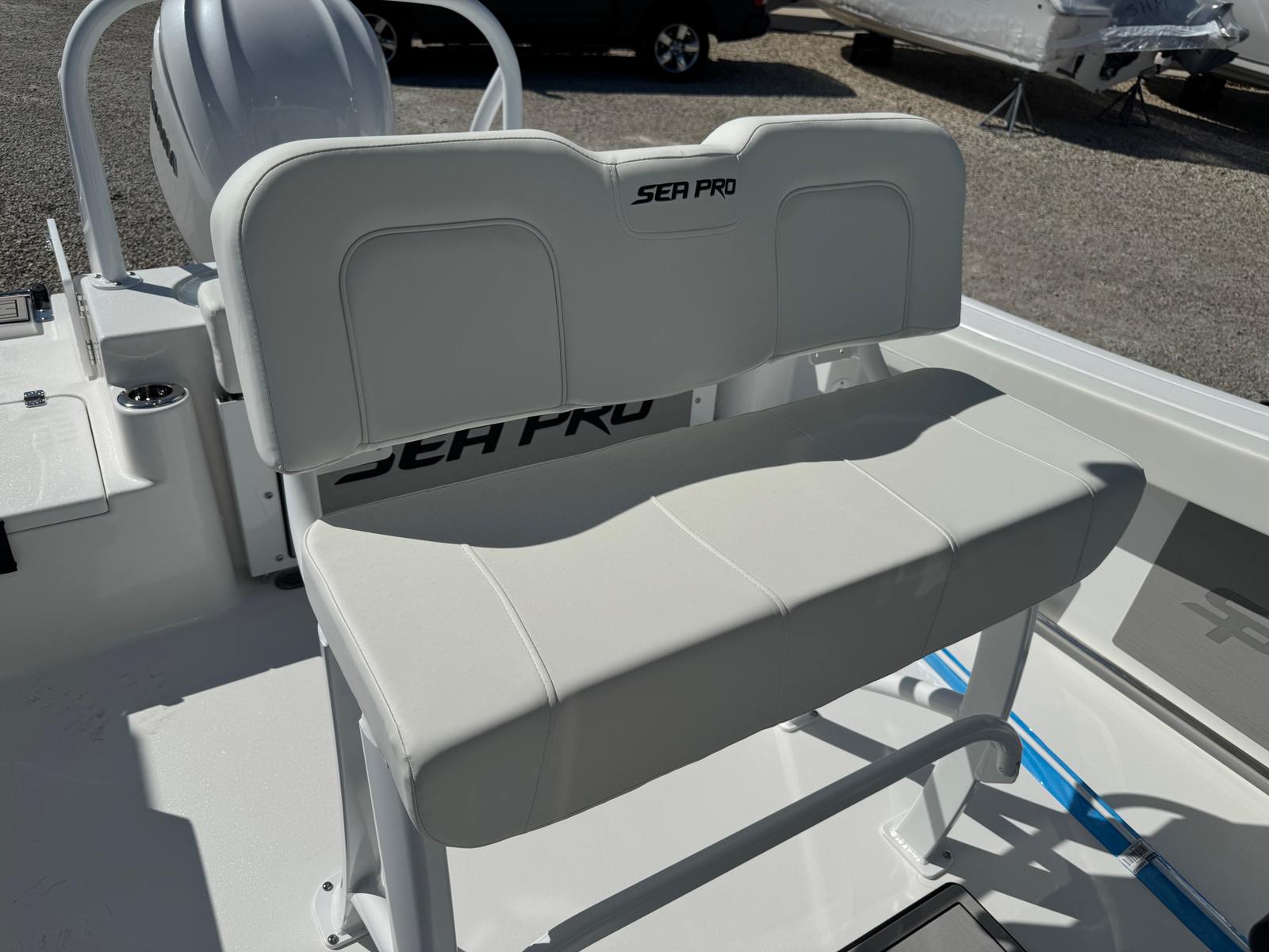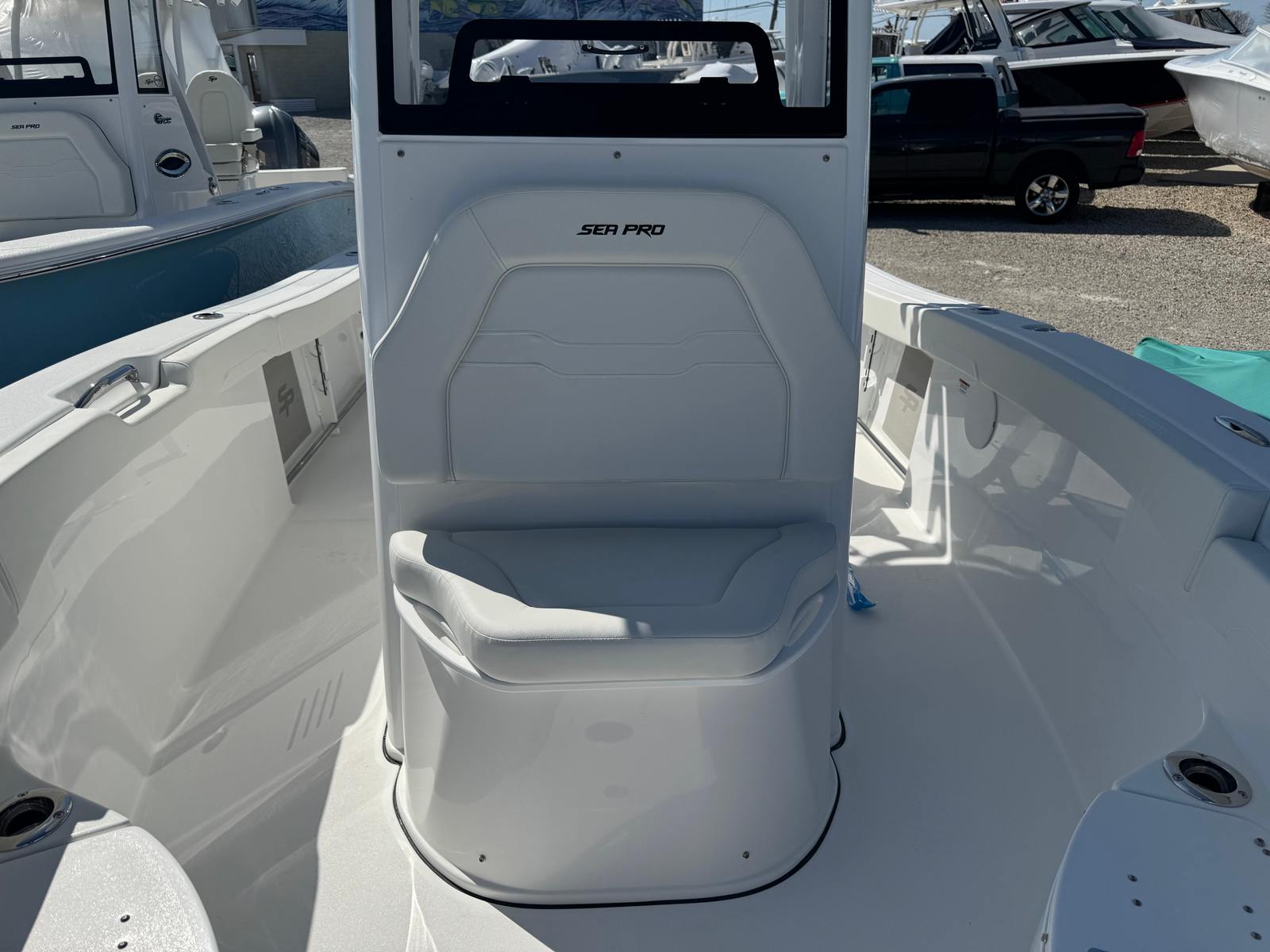 The Sea Pro 242 Sport is packed with features that set it apart from other center console boats for sale. On the hull and deck, you’ll find a convenient ski tow bar, perfect for water sports and family fun. Stainless steel cup and rod holders (2) provide both durability and versatility, making it easy to switch between fishing and relaxing with a cold beverage. The fish box macerator pump option is a must-have for serious anglers, ensuring your catch stays fresh and your deck remains clean.For protection and longevity, the Sea Pro 242 Sport comes equipped with a console seat cover, dash panel cover, and leaning post cover, all crafted from high-quality canvas. These covers help preserve the boat’s appearance and protect key areas from the elements. At the helm, a wireless phone charger and holder keep your devices powered and secure, while the advanced Simrad NSX12 unit provides state-of-the-art navigation and fish-finding capabilities. Communication is seamless with the VHF Radio RS20, ensuring you stay connected wherever your adventures take you.
