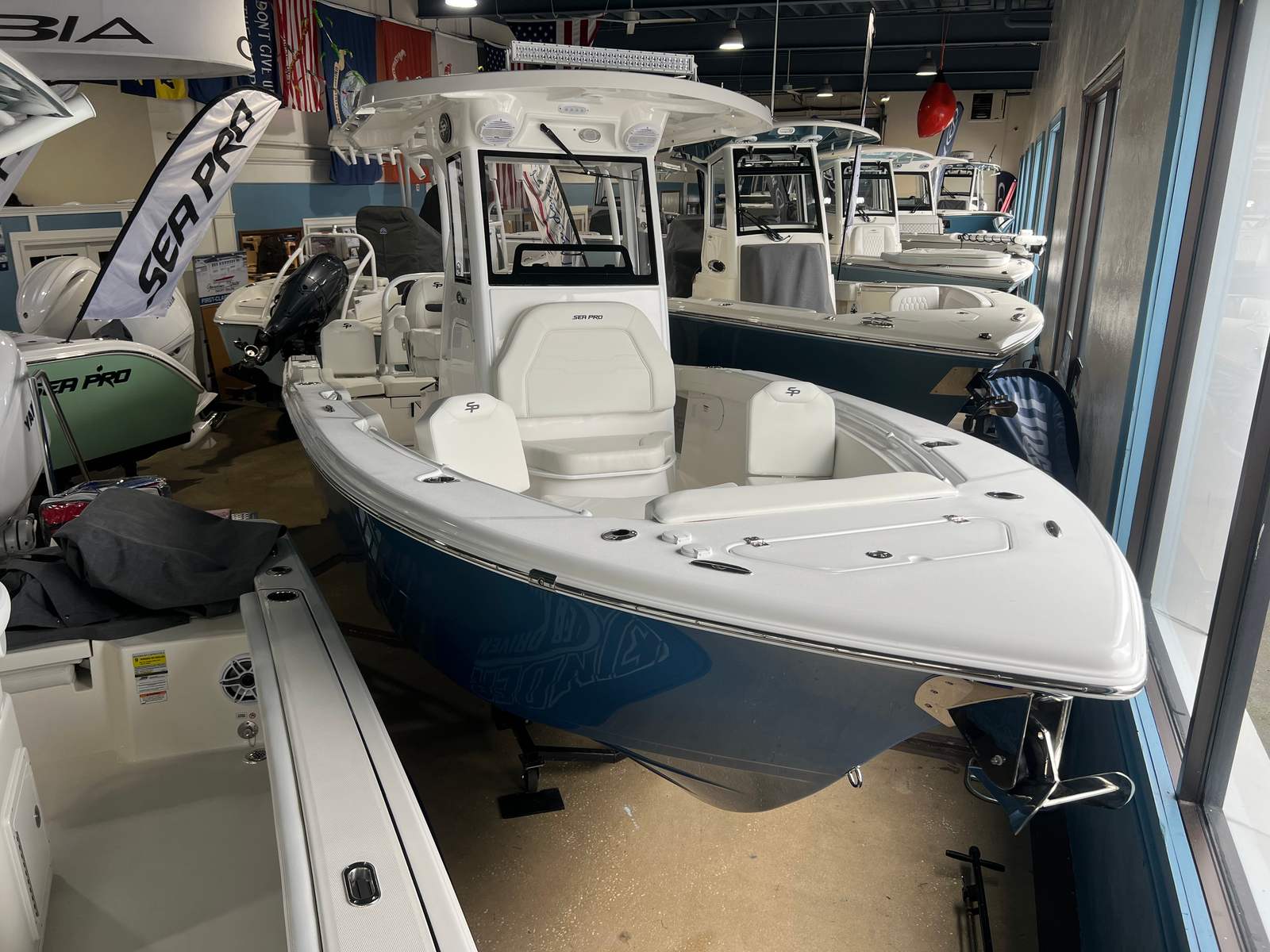The 2026 Sea Pro 245 Flxr Center Console is a standout choice for anyone seeking a new Center Console boat for sale that combines style, performance, and versatility. With its powerful Yamaha F300XSB engine, striking Sea Creature (Blue) hull, and a host of premium features—including the Complete Bolster Package, Lewmar Thru-Hull Windlass Pro-Fish 1000, Sun Shade Bow, upgraded audio system, VHF Radio RS20, hard top light bar, wireless phone charger, and COAST GUARD KIT NO ANCHORING—this Sea Pro boat for sale is ready to deliver unforgettable experiences on the water.Whether you’re planning family adventures, fishing excursions, or relaxing getaways, the Sea Pro 245 Flxr offers the perfect blend of comfort, convenience, and excitement. Don’t miss your chance to own this exceptional Center Console boat—contact the dealer today to learn more and start your next boating journey.