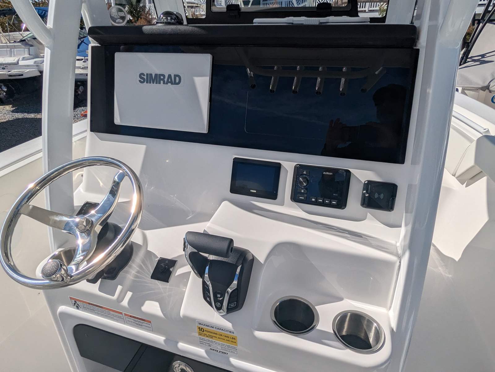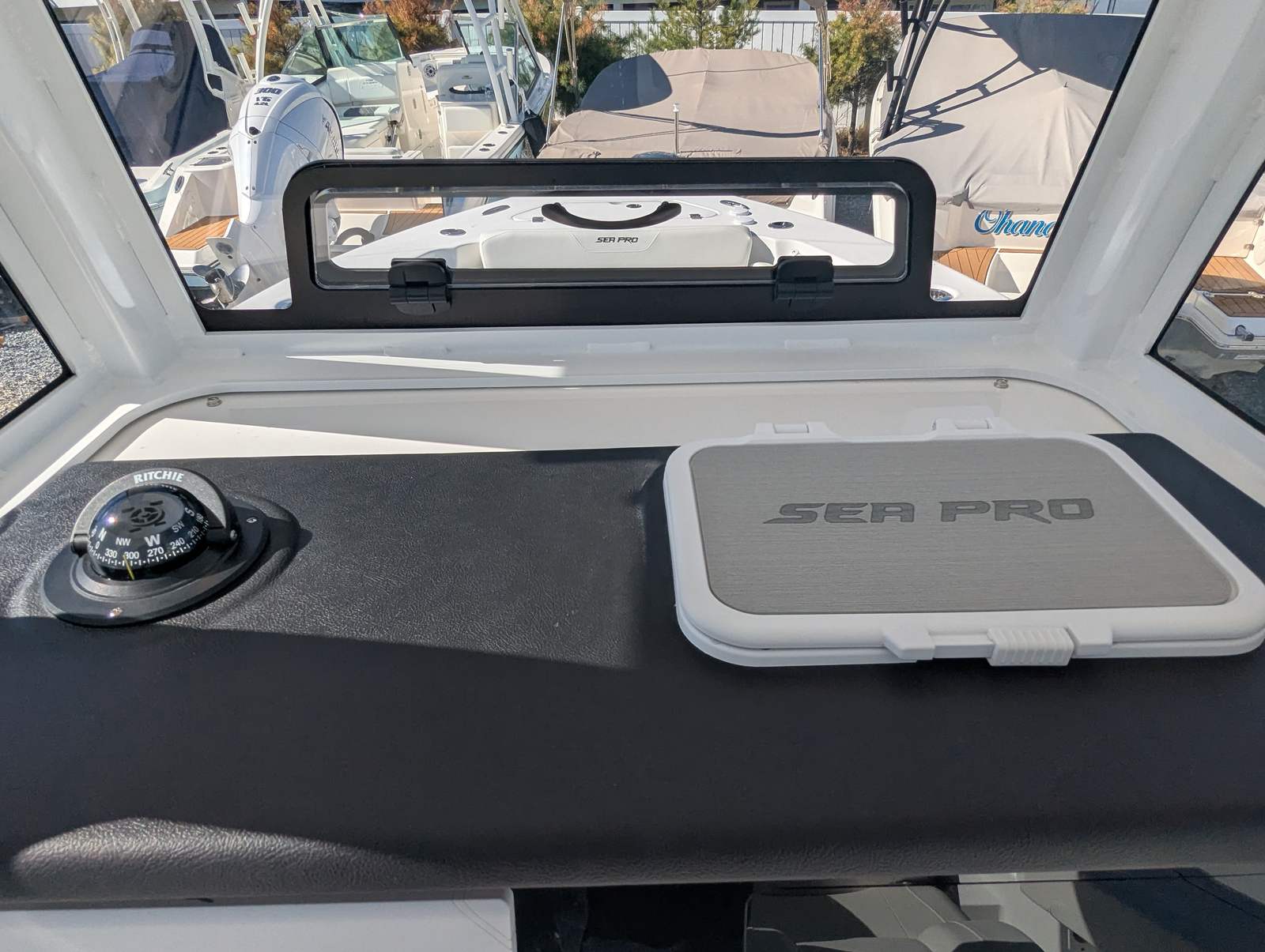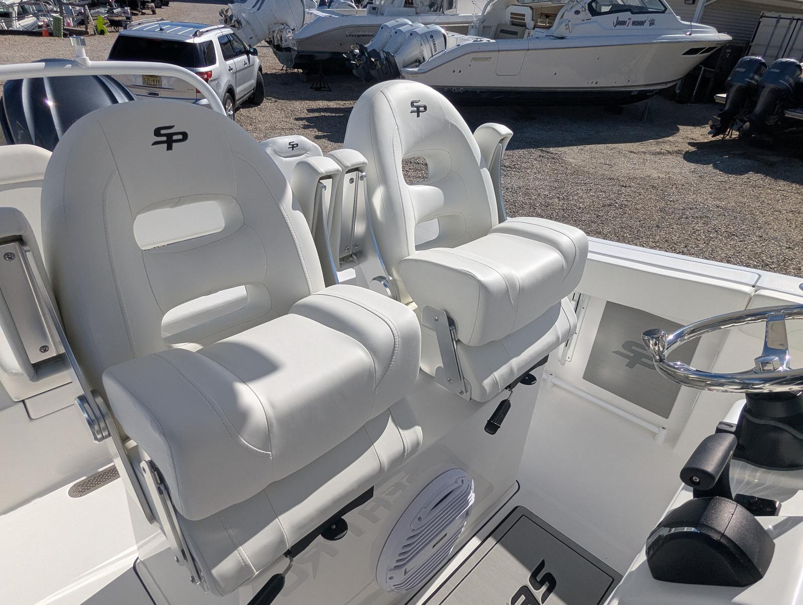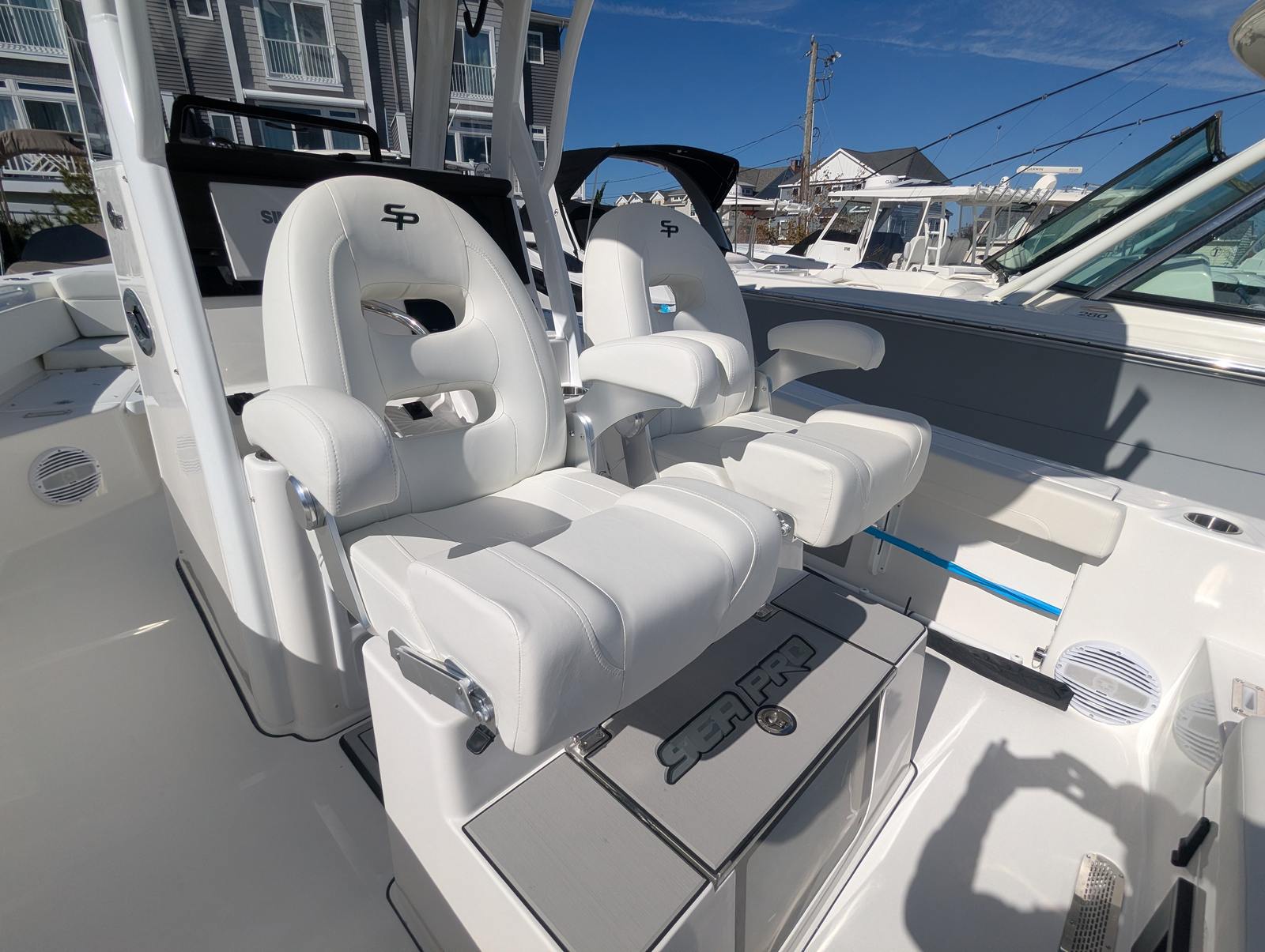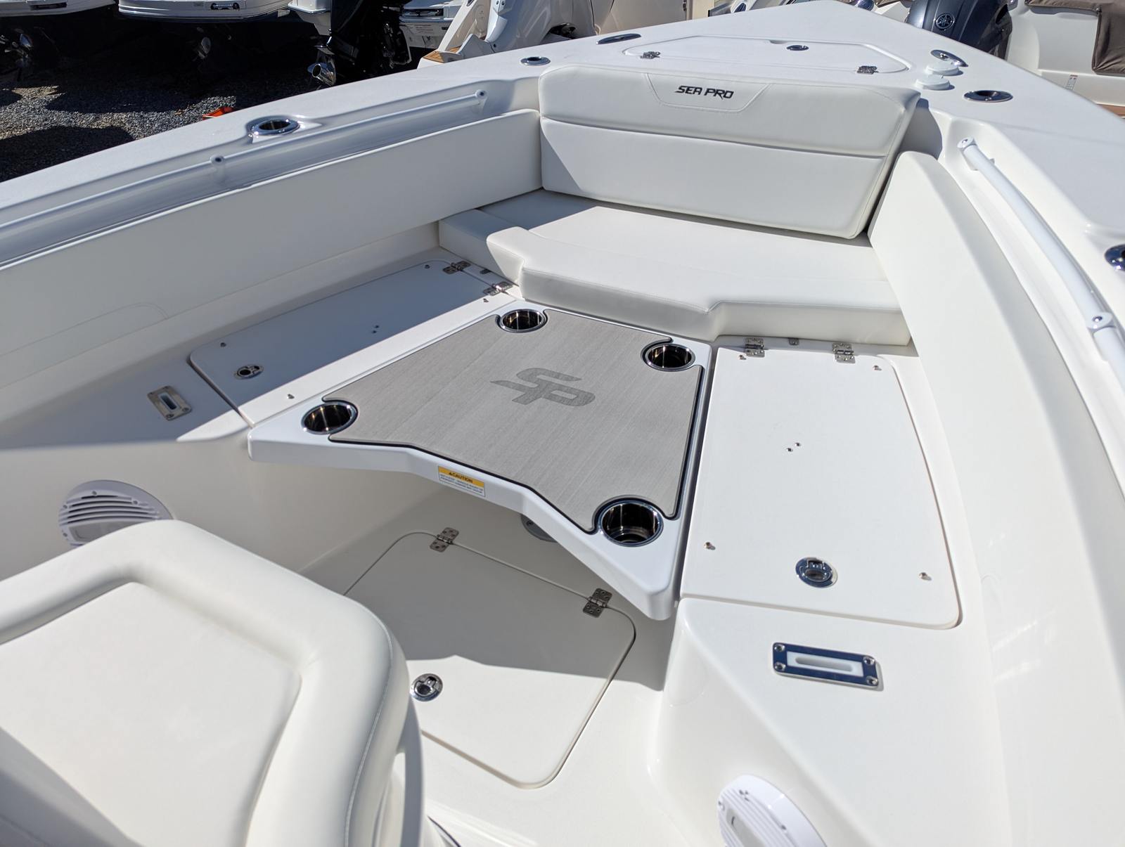 The Sea Pro 245 Flxr is loaded with features designed to enhance your time on the water. The white powder coat adds a clean, durable finish to the boat’s hardware, while the complete bolster package in white upholstery provides superior comfort and support for all passengers. The titanium helm pad offers a stylish and functional touch at the captain’s station, ensuring a comfortable and secure grip while navigating.Anchoring is made effortless with the Lewmar Thru-Hull Windlass Pro-Fish 1000, a premium system that allows for smooth and reliable anchoring in a variety of conditions. For added protection and longevity, the boat includes a console seat cover and a dash panel cover, both crafted from high-quality canvas to shield key areas from the elements. Every detail of the 245 Flxr is thoughtfully designed to deliver a premium boating experience.