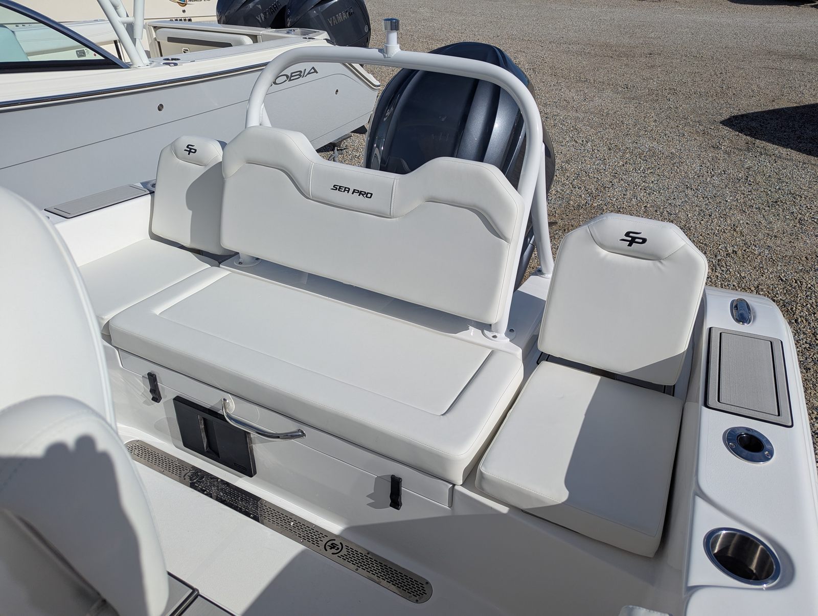 Owning the Sea Pro 245 Flxr means embracing a lifestyle of fun, relaxation, and adventure. The spacious center console layout provides plenty of room for socializing, fishing, or simply soaking up the sun. The plush, complete bolster package ensures that everyone on board enjoys maximum comfort, whether you are cruising at speed or anchored in a quiet cove. The advanced helm pad and ergonomic design make piloting the boat a pleasure, even on longer journeys.The boat’s striking Platinum hull side color and white upholstery create a fresh, inviting atmosphere that is perfect for entertaining guests or spending quality time with family. The thoughtful inclusion of protective canvas covers helps maintain the boat’s pristine appearance, ensuring it looks as good as it performs for years to come.