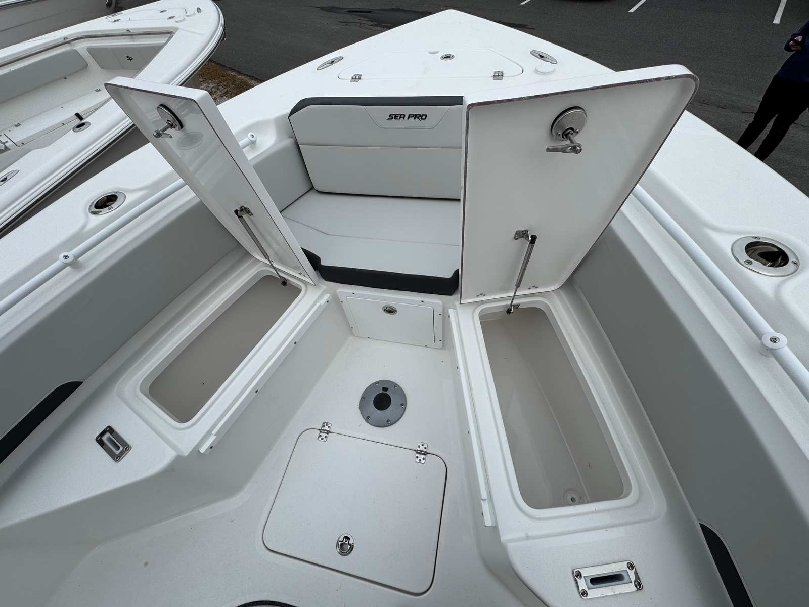 The 2026 Sea Pro 245 Flxr is a brand-new Center Console boat that measures an impressive 23.75 feet in length, making it the perfect size for both inshore and offshore adventures. With its sleek lines, contemporary design, and Platinum hull color accented by a White hull bottom, this boat is sure to turn heads at the marina and on open water. The Platinum upholstery and White powder-coated accents further enhance its sophisticated aesthetic, ensuring you cruise in style wherever your journey takes you.
