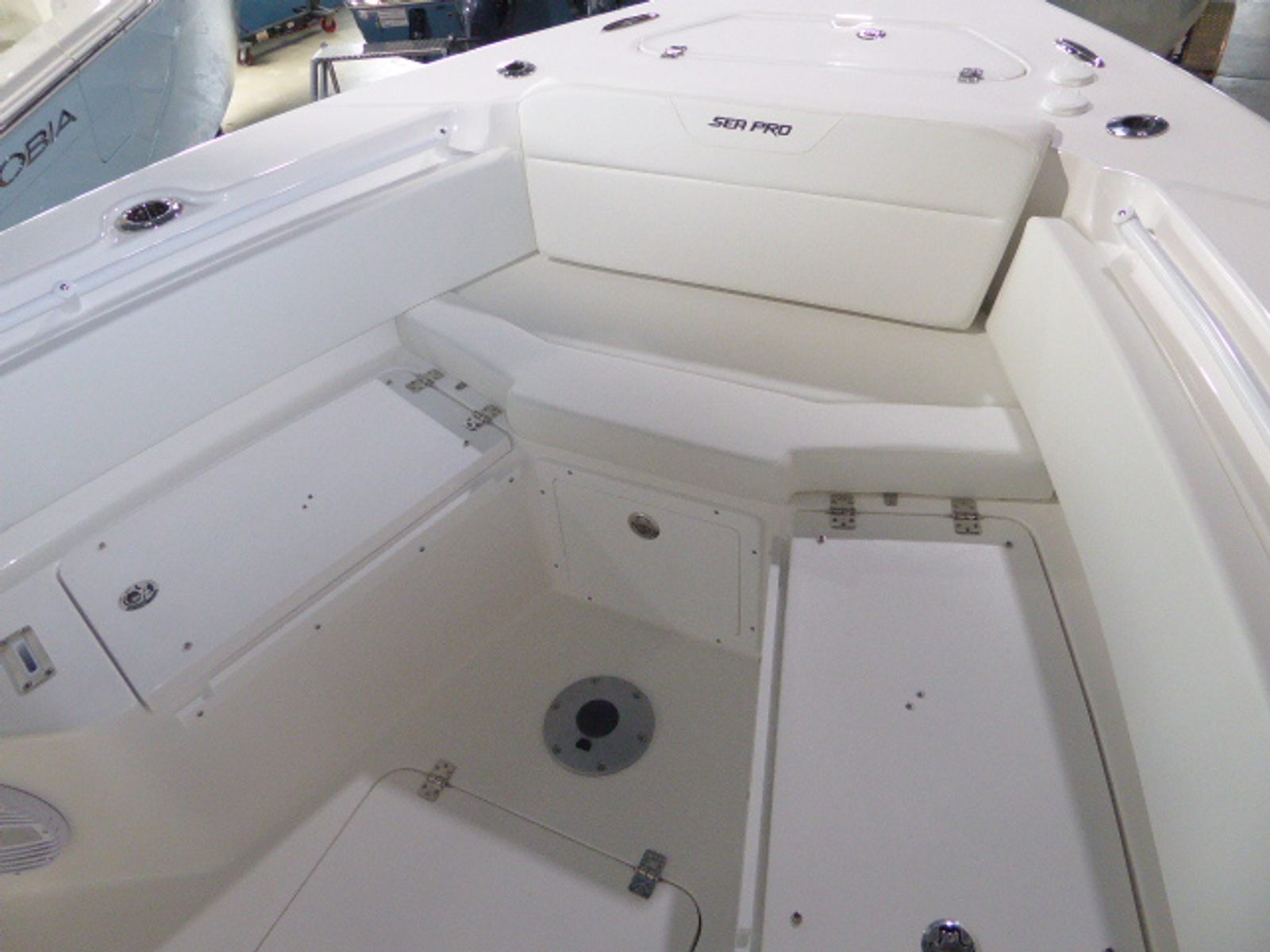 The Sea Pro 245 Flxr comes loaded with special features that set it apart from other Center Console boats for sale. The complete bolster package in white upholstery ensures maximum comfort and support for you and your guests, while the white powder coat adds durability and a clean, modern look. Anchoring is made effortless with the Lewmar Thru-Hull Windlass Pro-Fish 1000, allowing you to secure your boat quickly and efficiently in any location.For those who love spending time in the sun, the Sun Shade Bow (including two rod holders) provides much-needed protection and convenience, making it easy to relax or fish in comfort. The audio upgrade, featuring an amplifier, subwoofer, and six speakers, transforms your boat into a floating entertainment center, perfect for enjoying your favorite tunes while out on the water. The Ice Blue color scheme on the hull bottom, sides, and underside not only enhances the boat’s visual appeal but also reflects the Sea Pro brand’s commitment to quality and style.