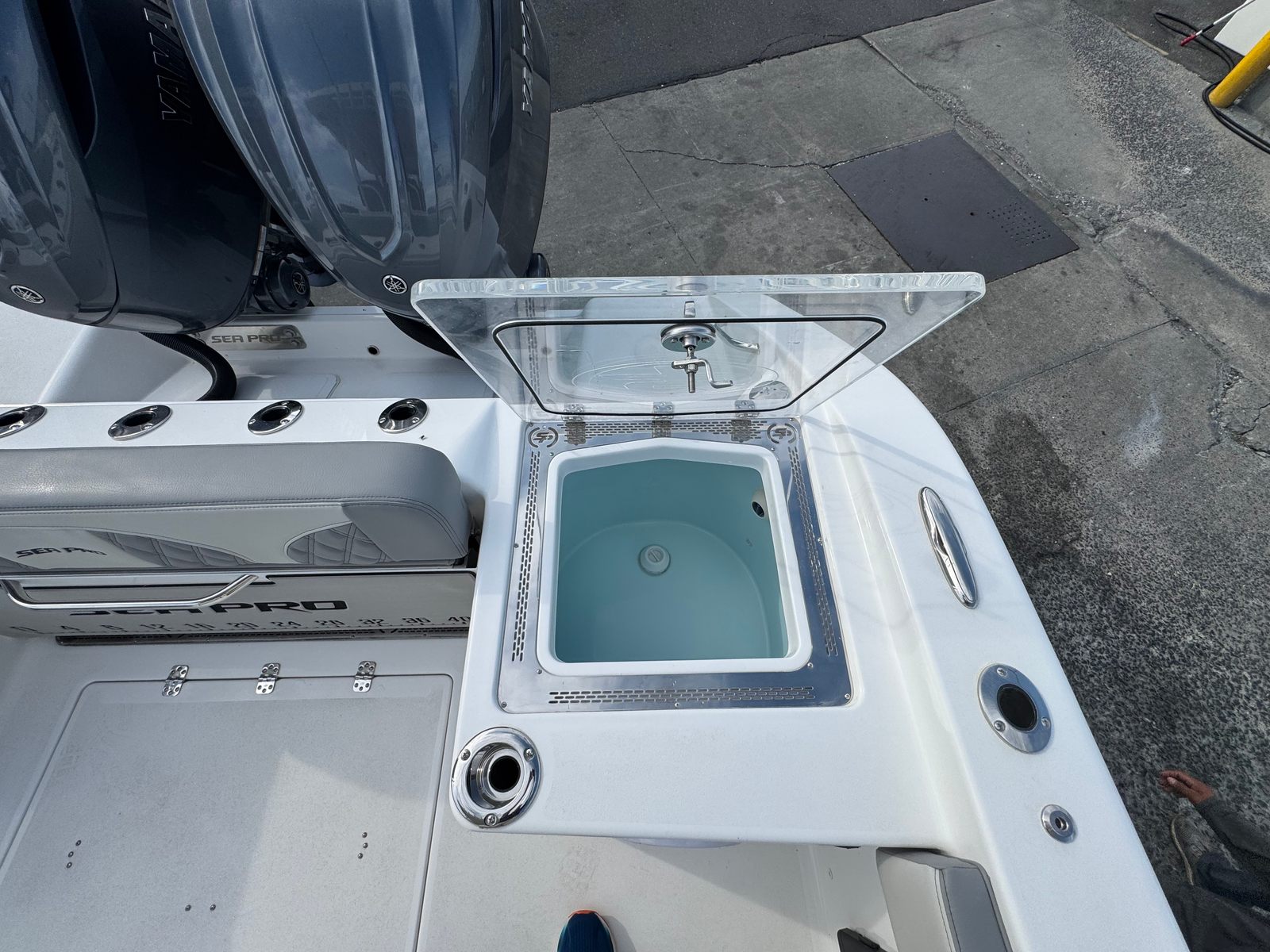 Powering the Sea Pro 322 DLX is a robust 700 horsepower engine, ensuring exhilarating performance and smooth handling in a variety of conditions. Whether you’re cruising along the coastline, heading offshore for a fishing expedition, or enjoying a leisurely day on the lake, this Center Console boat responds with agility and power. The advanced Yamaha Digital rigging system provides precise control and reliability, making every journey effortless and enjoyable. With this much horsepower at your command, you’ll experience rapid acceleration, impressive top speeds, and the confidence to tackle challenging waters.