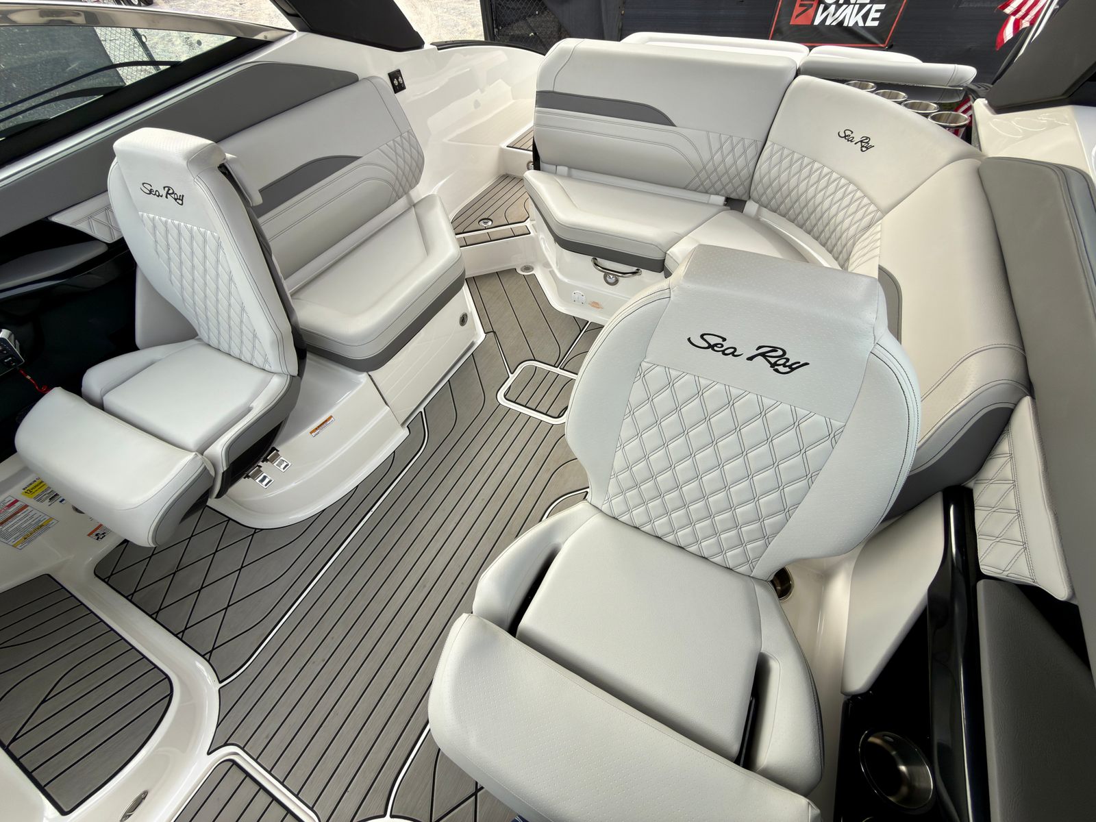 Powered by Sea Ray’s surf-specific propulsion and Smart Surf technology, this boat delivers a clean, customizable wave without sacrificing the ride quality Sea Ray is known for. Deep-V hull, upscale fit and finish, and smart storage throughout.