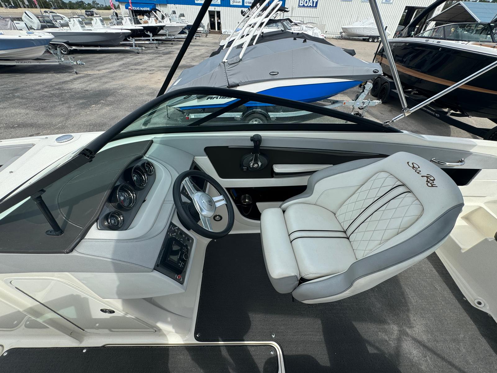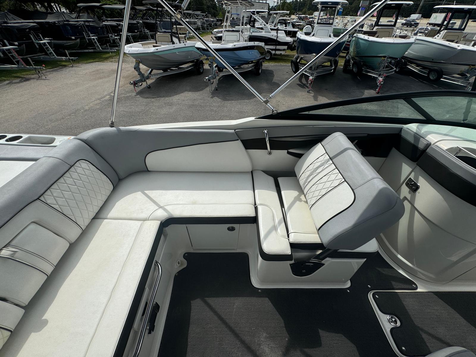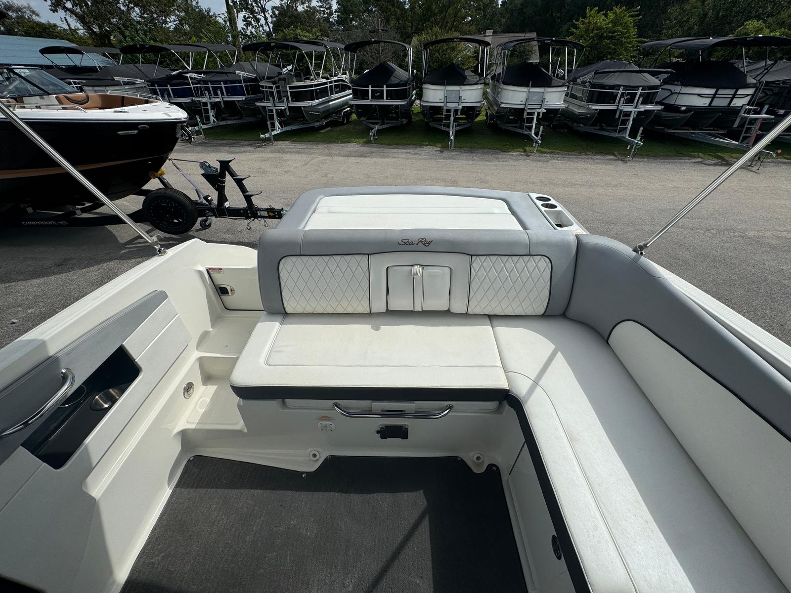 This Bowrider boat for sale is perfect for a variety of activities and occasions. Imagine hosting family outings, where kids and adults alike can swim, sunbathe, and enjoy water sports. The Sea Ray SDX 240 shines during fishing trips, offering a stable platform and plenty of space for casting lines and relaxing with friends. It’s equally suited for luxury getaways, where you can cruise scenic waterways, anchor in secluded coves, and enjoy the tranquility of nature. The combination of comfort, performance, and special features makes this Sea Ray boat for sale a versatile choice for any boating lifestyle.