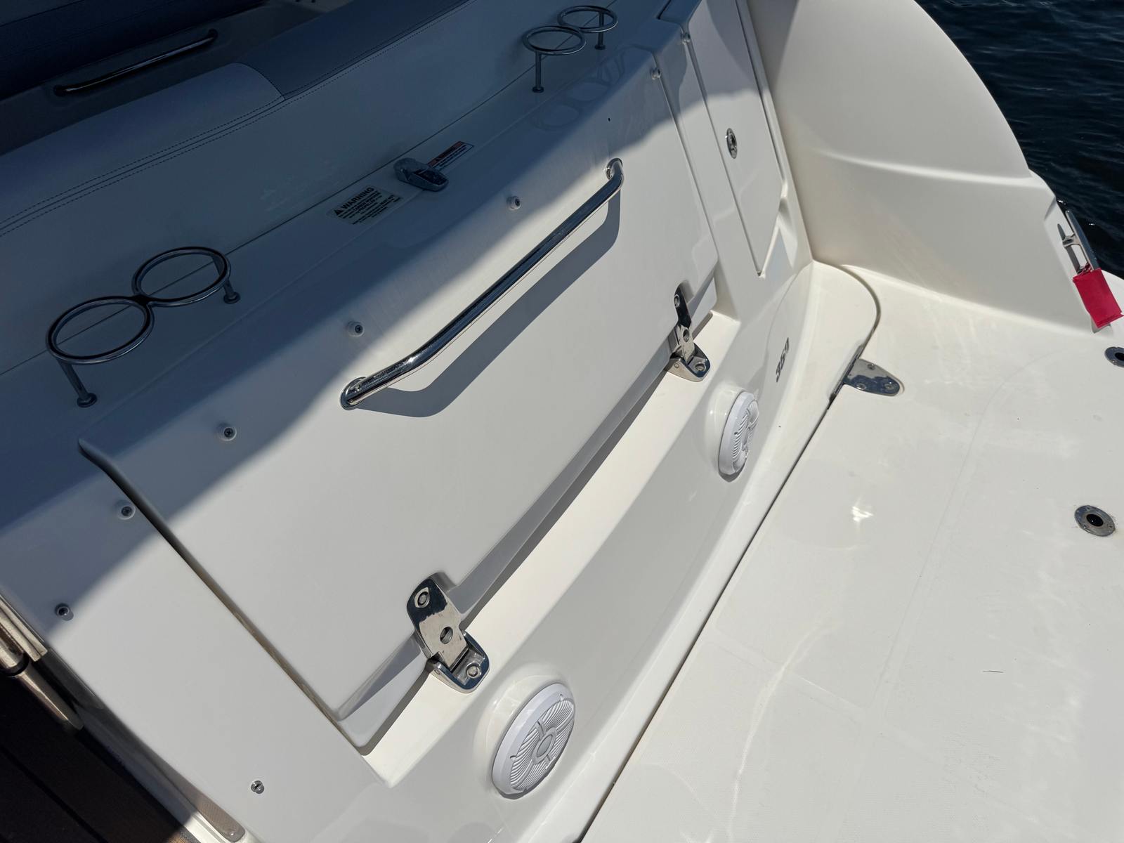 Under the hood, the Sea Ray Sundancer 350 boasts twin engines with a combined 750 horsepower, ensuring robust performance and smooth handling. With only 496 engine hours, these engines have plenty of life left, offering reliable power whether you’re cruising at a leisurely pace or picking up speed for a thrilling ride. The dual-engine setup provides enhanced maneuverability and stability, making docking and navigating tight spaces a breeze. Whether you’re exploring coastal waters or venturing out for longer journeys, the Sundancer 350 delivers a responsive and exhilarating boating experience.