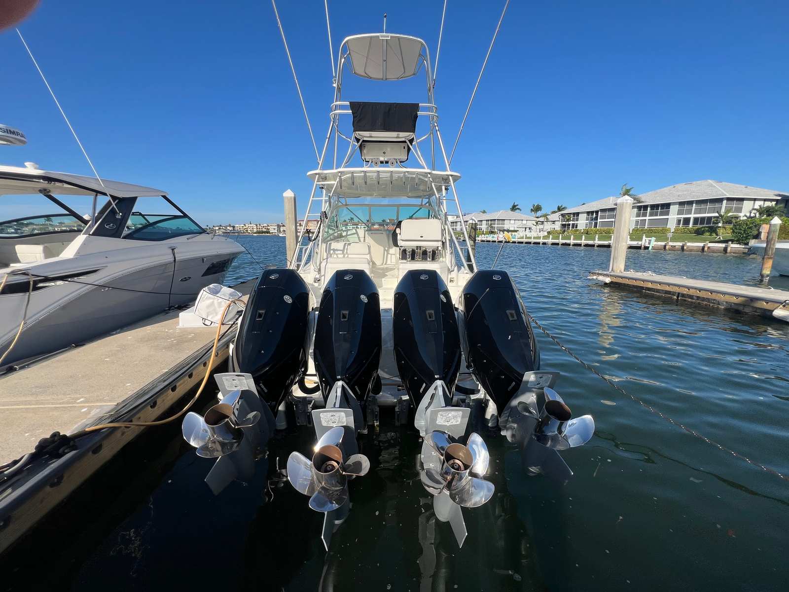 The Hull: Sea Vee’s 430 Express is a legendary "dry" ride. With the weight of the V10s and the adjustability of the Bob's Jack Plates, the center of gravity and engine height can be fine-tuned for any sea state.