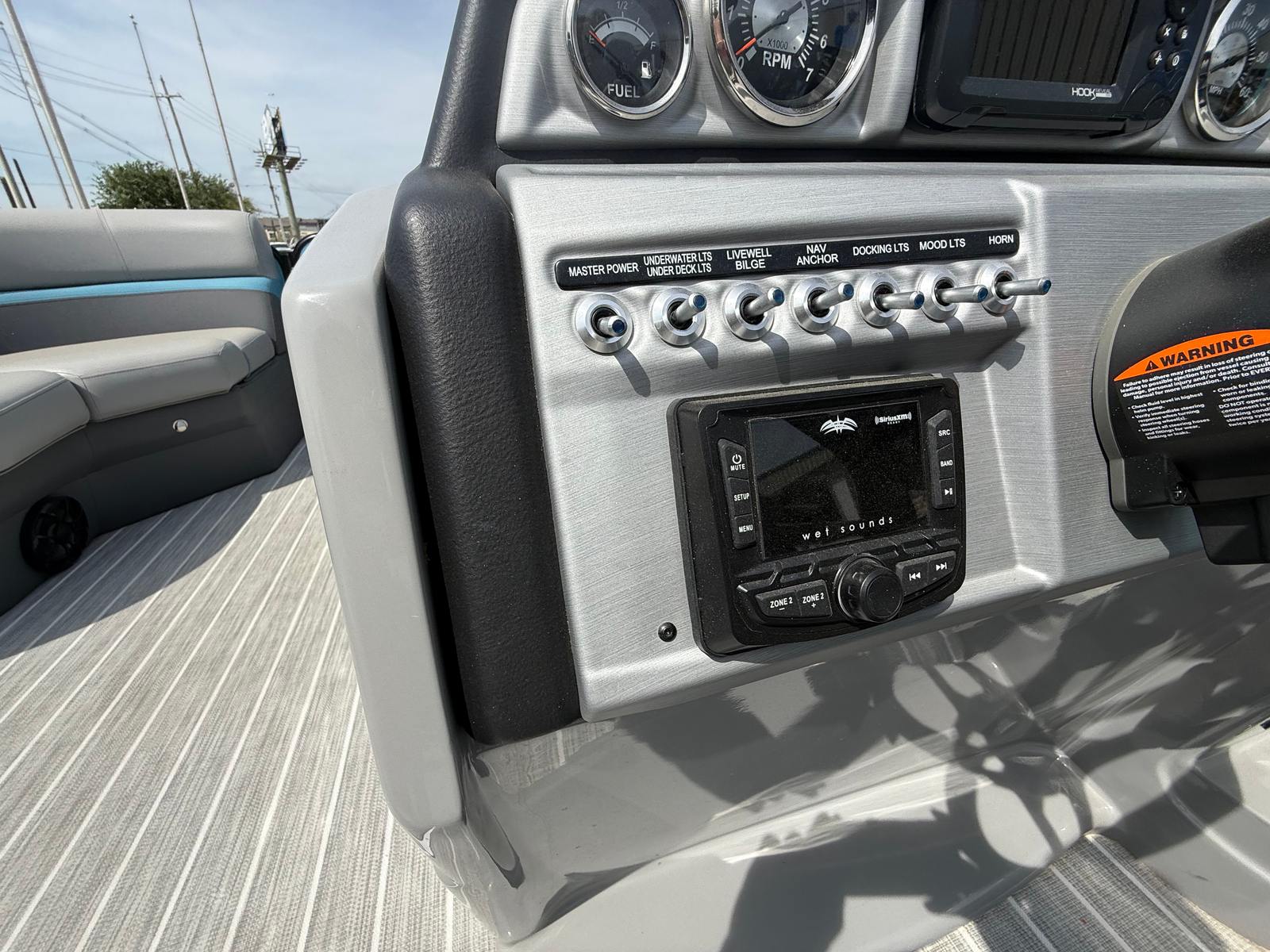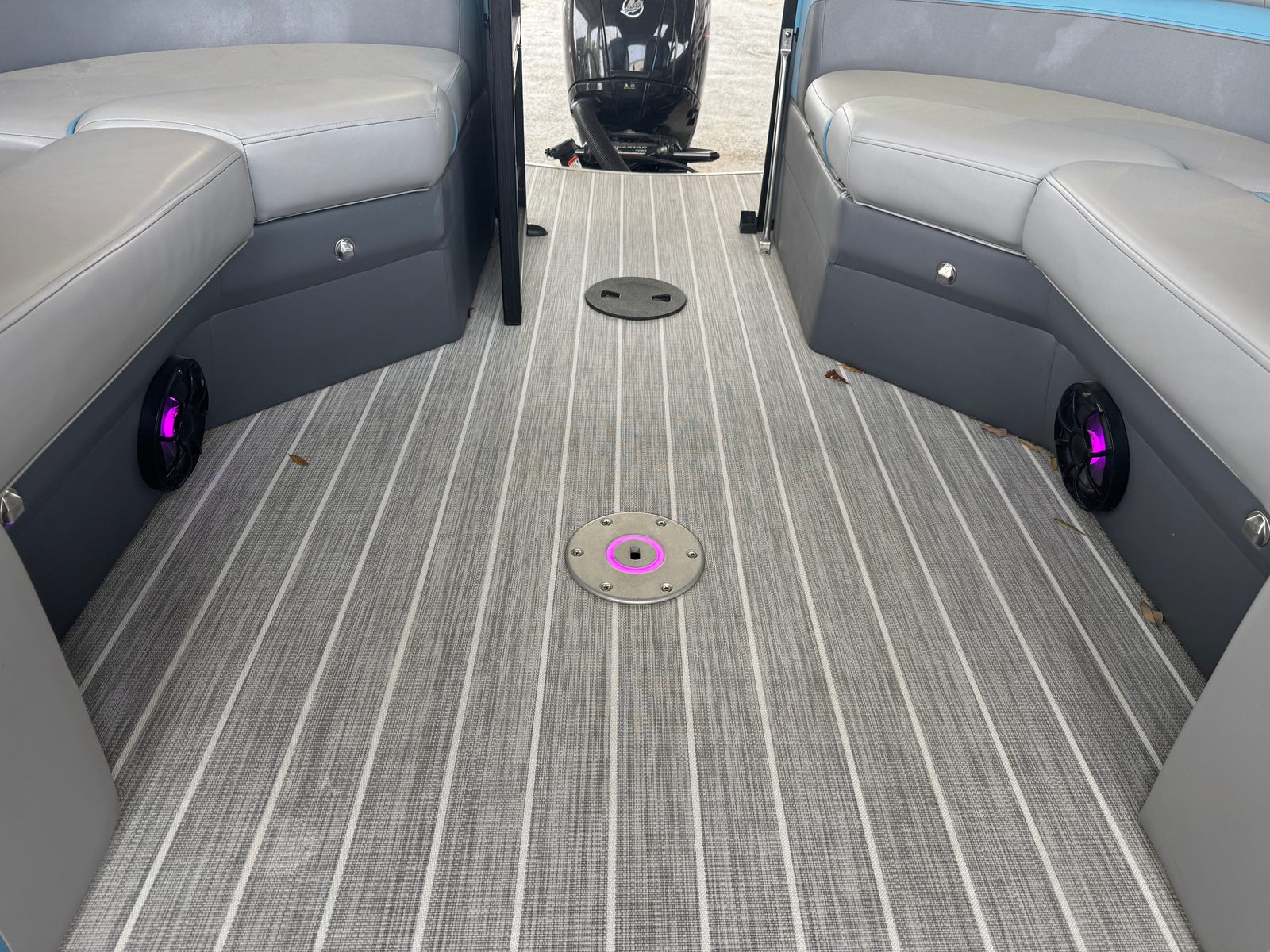 The South Bay S222RS is thoughtfully equipped with features that enhance your boating experience. Its spacious deck layout is perfect for entertaining, with plenty of seating for family and friends. The pontoon’s design maximizes usable space, allowing for easy movement and comfortable lounging. The quality construction and attention to detail are evident throughout, ensuring durability and long-lasting enjoyment. As a 2023 model, this used pontoon boat benefits from the latest advancements in pontoon technology and design, offering a modern and stylish appearance on the water.