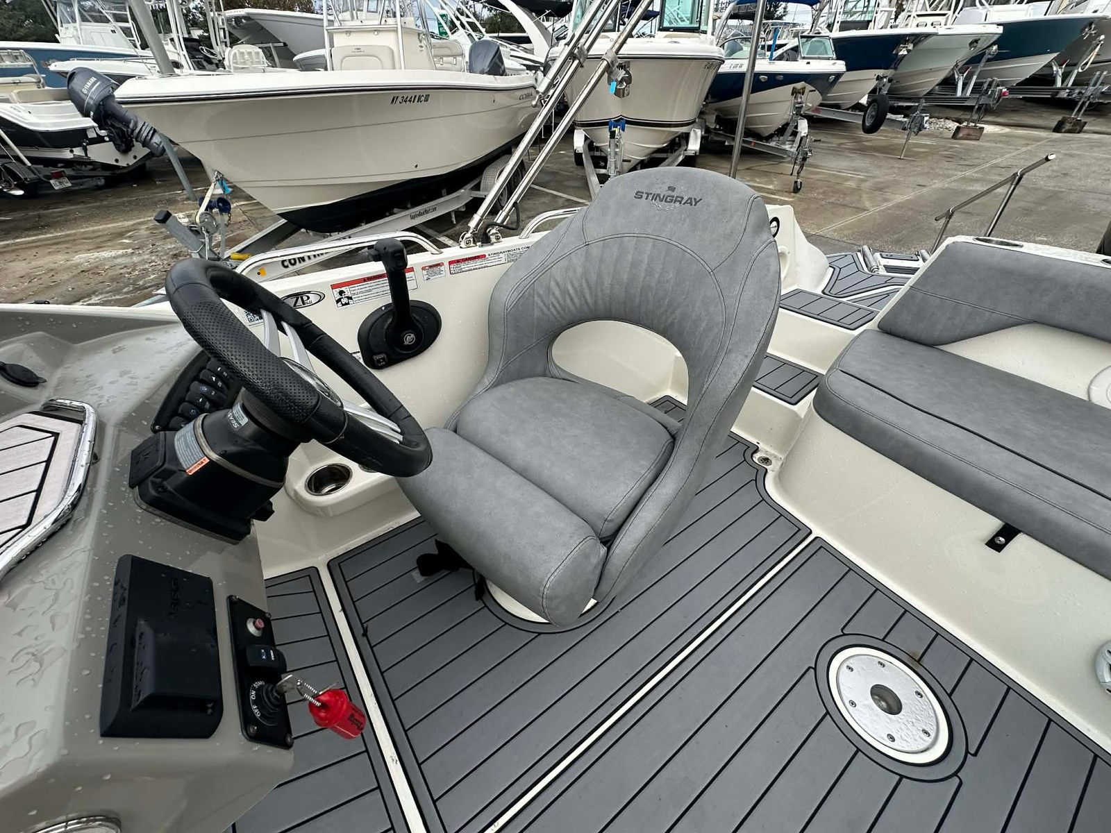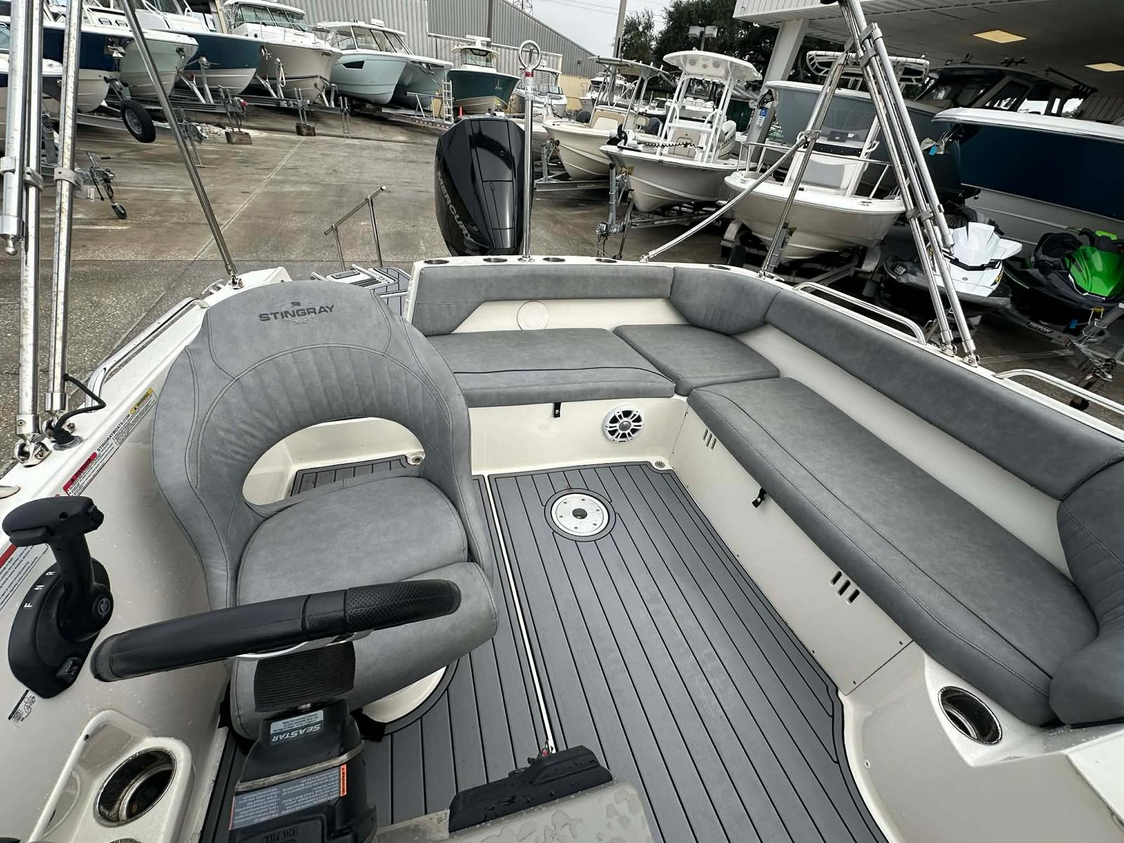 The Stingray 212 SC is packed with features that elevate your time on the water. Its spacious bow seating area invites guests to stretch out and enjoy the breeze, while the open cockpit design ensures everyone has plenty of room to move around. The ergonomic helm is thoughtfully laid out, giving the captain easy access to controls and clear sightlines for safe navigation. The 21-foot length provides a perfect balance between maneuverability and onboard space, making it easy to dock and store while still accommodating a group of friends or family.This bowrider is designed with both leisure and practicality in mind. The seating configuration encourages conversation and relaxation, while the swim platform at the stern makes it easy to take a dip or launch water toys. The Stingray 212 SC’s thoughtful layout ensures that every inch of space is utilized for comfort and convenience, making it a standout choice among bowrider boats for sale.