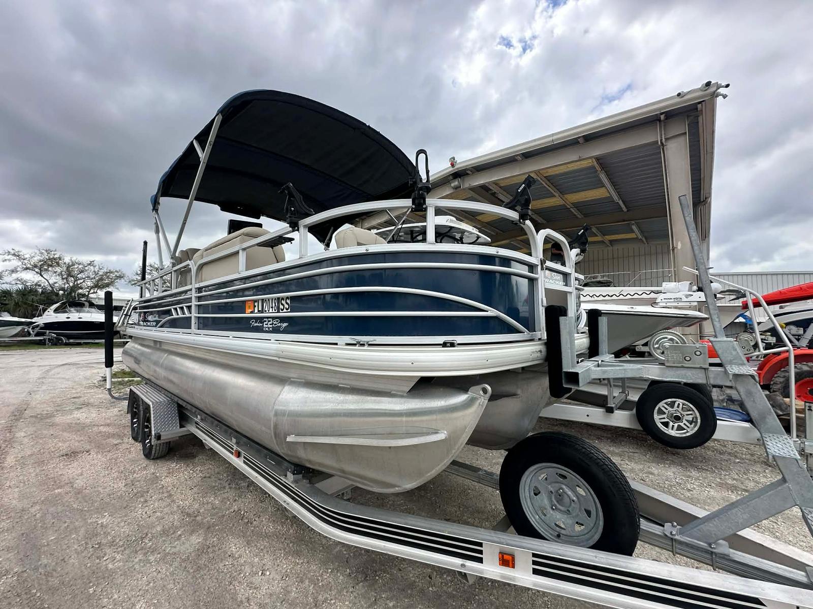 The SunTracker Fishin’ Barge 22 XP3 is the perfect combination of family cruising and serious fishing capability. Built on Tracker’s XP3 performance tritoon package, this boat delivers improved stability, speed, and handling compared to traditional pontoons. Powered by a Mercury 150HP outboard with only 80 hours, it has plenty of power for cruising, pulling tubes, or running to your favorite fishing spots.