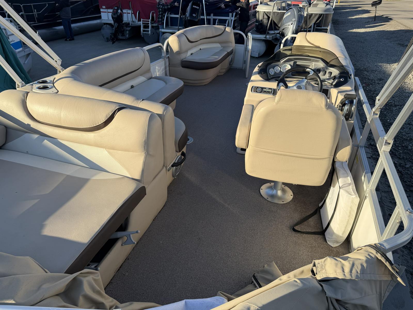 The 2016 Sun Tracker Party Barge 22 DLX shines in a variety of scenarios. It’s perfect for family outings, where kids and adults alike can enjoy swimming, fishing, or simply relaxing in the sun. The spacious deck is ideal for hosting parties, barbecues, or casual get-togethers with friends. For those who love fishing, the stable platform and ample room make it easy to cast a line and reel in your next big catch.This pontoon boat is also a fantastic choice for romantic sunset cruises, solo escapes, or weekend adventures. Its versatility ensures that every trip is tailored to your preferences, whether you’re seeking excitement or tranquility. The Party Barge 22 DLX adapts to your lifestyle, making it a valuable addition to any boating enthusiast’s collection.