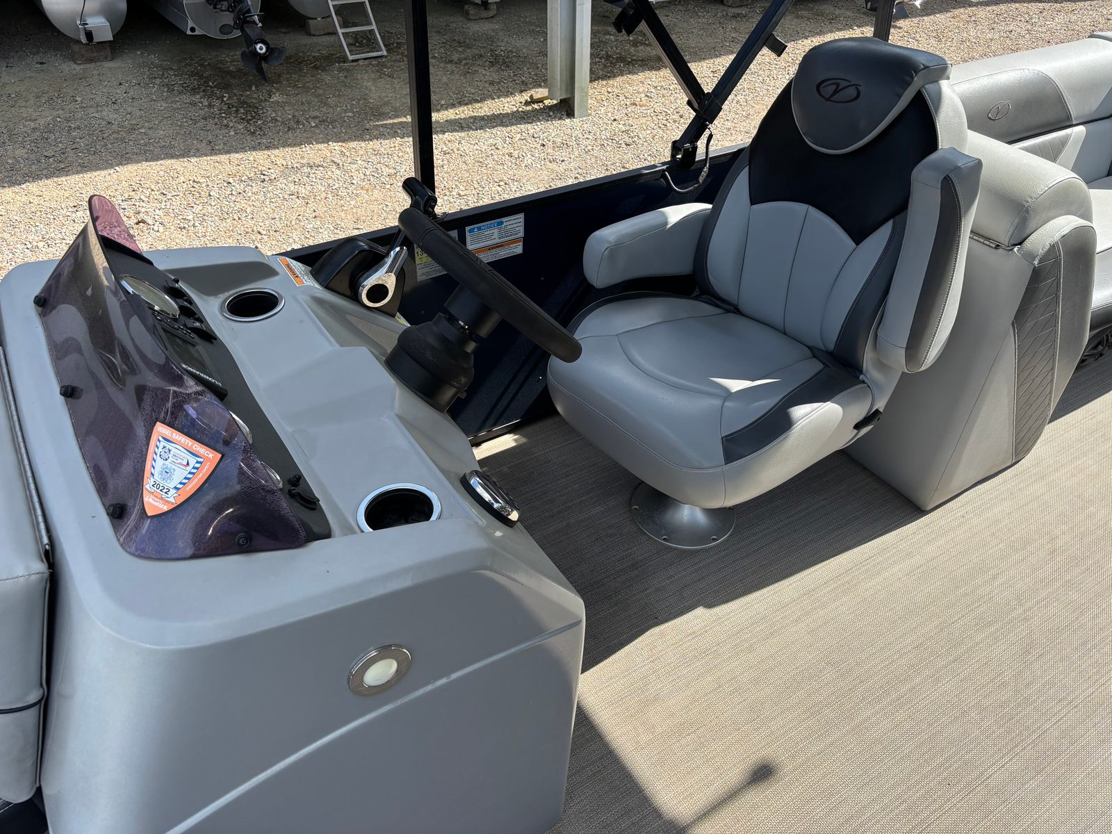 Powered by a single engine with an impressive 175 horsepower, the Veranda Vista 22RC delivers the perfect balance of power and efficiency. With 723 engine hours, this pontoon boat demonstrates reliability and proven performance on the water. The robust engine ensures smooth acceleration, responsive handling, and the capability to cruise comfortably at various speeds. Whether you’re towing water toys, heading out for a leisurely sunset cruise, or exploring new waterways, the Vista 22RC’s engine provides the confidence and excitement you seek in a pontoon boat for sale.