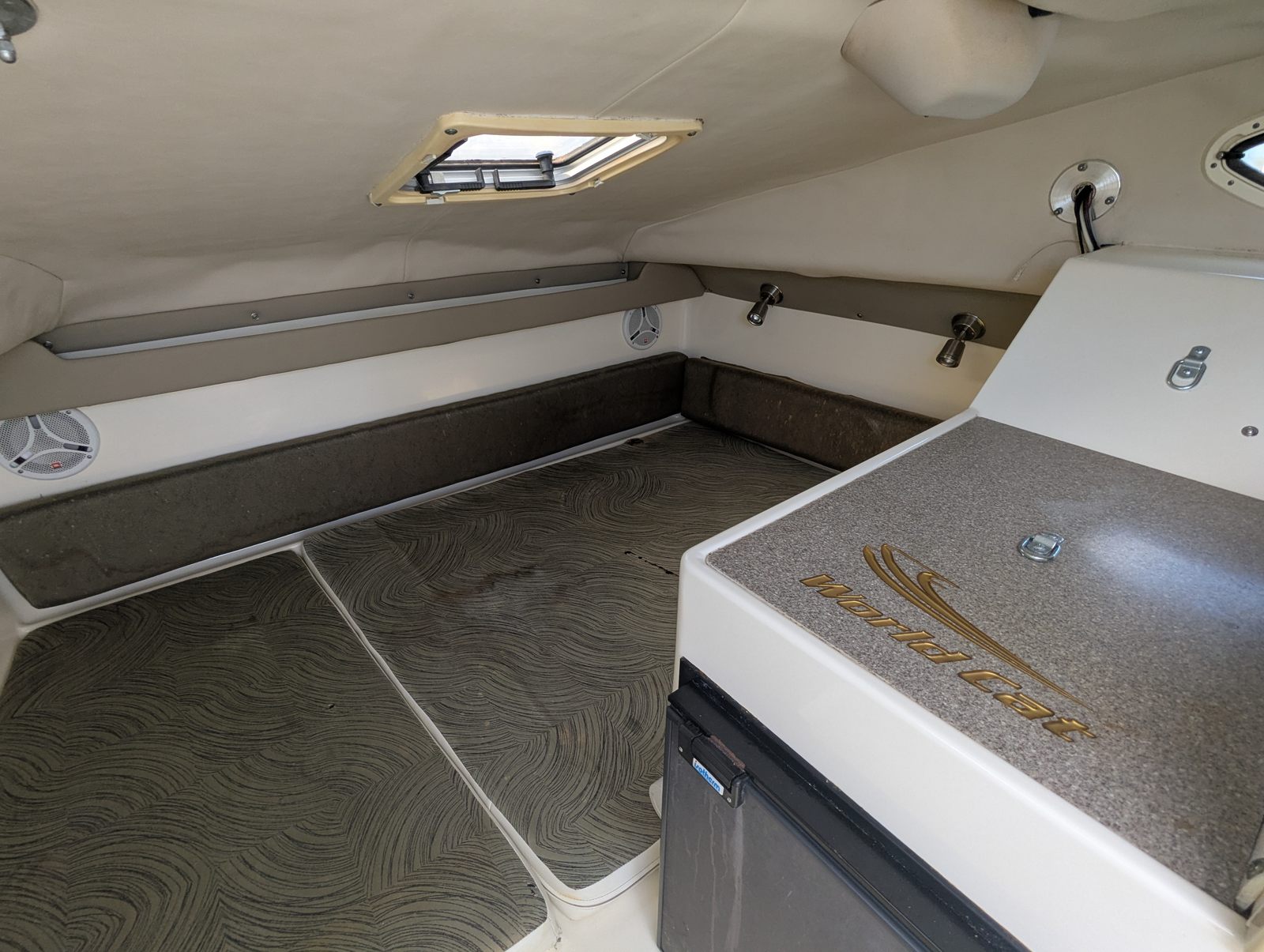 Equipped with twin engines delivering a combined 450 horsepower, the World Cat 270 EC offers impressive power and agility on the water. With 900 engine hours, these engines have proven their reliability and are ready for many more adventures. The dual engine setup ensures excellent maneuverability, making docking and navigating tight spaces a breeze. Whether you’re cruising at a leisurely pace or picking up speed to reach your favorite fishing spot, the performance of this dual console boat is both exhilarating and dependable. The catamaran hull design further enhances stability, reducing the impact of choppy waters and providing a comfortable ride for everyone on board.