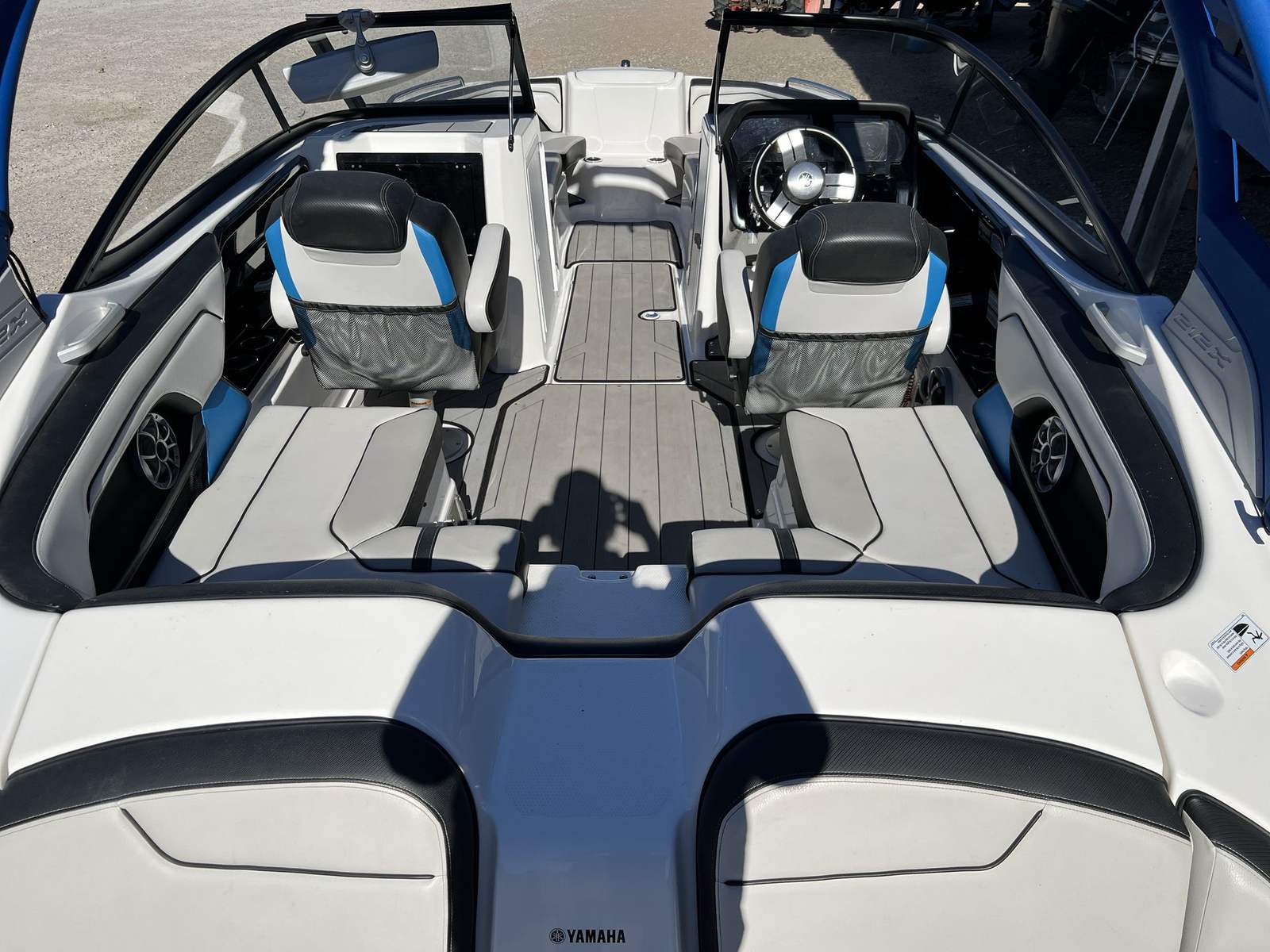 The Yamaha 212X is packed with features that enhance your time on the water. Its 21-foot length provides ample space for passengers, gear, and activities, making it ideal for group outings. The jet propulsion system eliminates the need for exposed propellers, increasing safety for swimmers and water sports enthusiasts. The ergonomic helm offers intuitive controls, while the spacious cockpit and seating areas ensure everyone can relax in comfort. With its modern design and attention to detail, this Yamaha boat for sale delivers both style and substance.