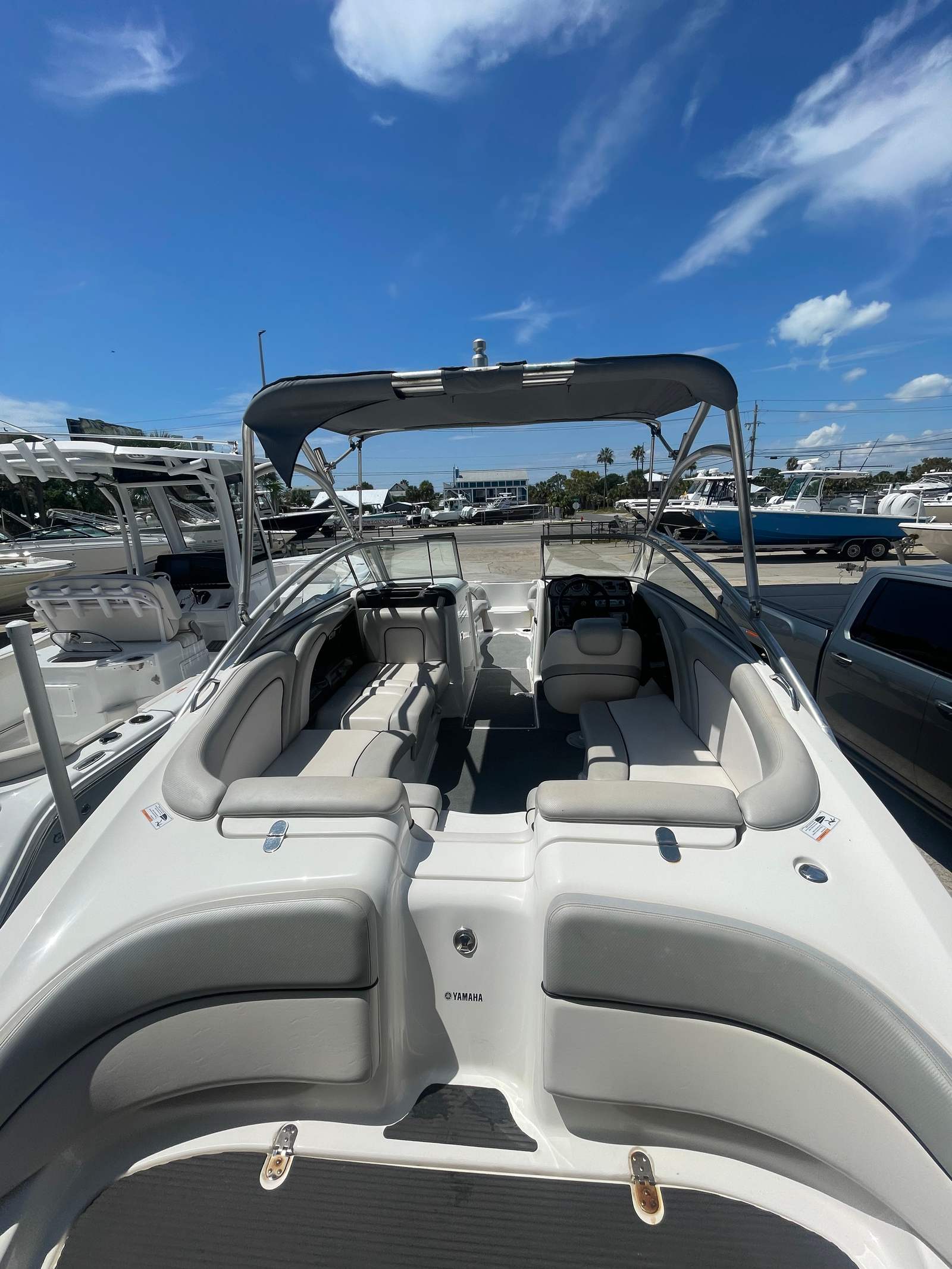 Under the hood, the Yamaha AR240 is powered by twin engines, delivering a combined 360 horsepower. With only 225 engine hours, these engines have plenty of life left, ensuring you can enjoy many more seasons of fun on the water. The dual-engine setup provides impressive acceleration, responsive handling, and the kind of agility that jet boats are famous for. Whether you are carving through tight turns, towing water toys, or cruising at high speeds, the AR240 delivers a smooth and exhilarating ride every time.The jet propulsion system not only enhances performance but also offers added safety, as there are no exposed propellers. This makes the AR240 an excellent choice for families with children or anyone who values peace of mind while enjoying water sports.